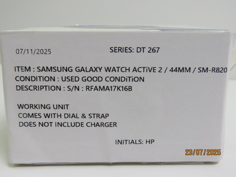 Samsung Galaxy Watch Active2 (44mm) SM-R820 [DT267] Functional Condition: Tested and Functional. Cosmetic Condition: This is a Used Item and Normal Wear (Scuffs & Scratches) is Expected. Items included in this listing: Dial Strap Items NOT included in this listing: Charger Thank you for Shopping with Us! ENJOY Free Shipping in USA & Low Cost Shipping to CANADA! Terms of Sale NOTE: Our Listings only include items as pictured - Please do not assume any item is included if its not pictured. We will try our best to picture all items included in this listing as well as its cosmetic condition. We Guarantee & Stand Behind our product and commitment to provide you with o nly Original, Branded, OEM & Genuine Products Shipping A complete and correct shipping address is essential. We cannot guarantee the shipping address can be changed after checkout. Sales Tax will be charged to all Canadian & USA Buyers. Combined shipping is not guaranteed. We are unable to change any content of your order based on the eBay checkout note or PayPal message. Customers with shipping addresses outside of the U.S.A and Canada are responsible for all duties and import taxes. Please contact your customs for information Bidding All items are accurately described and pictured. Please ensure you are consciously bidding on the items as described. Payment Payments are expected at the time of purchase or in case of Auctions, at the end of auctions. Payments are managed via eBay Managed Payments Contact Us Your positive feedbacks are extremely valuable to us. If you have any concerns about your order, please contact us through eBay message to resolve any issues before leaving a negative feedback or opening a dispute. We will reply within 24 Hours Return Policy All items are in used condition unless specified.