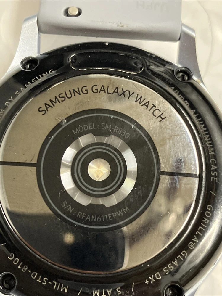 No Charger or any accessories, This Samsung Galaxy Watch Active2 is a high-quality smartwatch that offers a range of features to help you stay healthy and connected. It has a sleek silver aluminum case and a matching cloud silver band, making it a stylish accessory for any outfit. With GPS, heart rate monitor, fitness tracker, sleep monitor, and waterproof capabilities, it is perfect for keeping track of your daily activities and staying on top of your health goals. Wireless charging and 4 GB of storage capacity make it easy to stay connected and powered up throughout the day. This smartwatch is compatible with both iOS and Android operating systems and is designed to withstand the rigors of everyday use with Mil-STD 810G certification. No Charger or any accessories This is a pre-owned item that has been previously used., but otherwise It is in good condition. Please note: • The item does not come with its original packaging. • Returns are only accepted if the buyer pays for the return shipping label. Thank you for your understanding."
