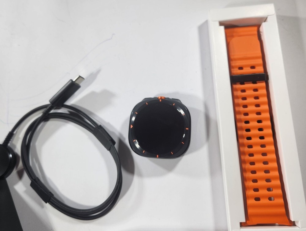 Designed for advanced functionality, this smartwatch pairs style with technology. It includes a vibrant orange band, durable build, and essential charger. • Includes an orange adjustable strap • USB-C charging cable provided • Durable, high-quality build • Large, easy-to-read display • Original packaging included