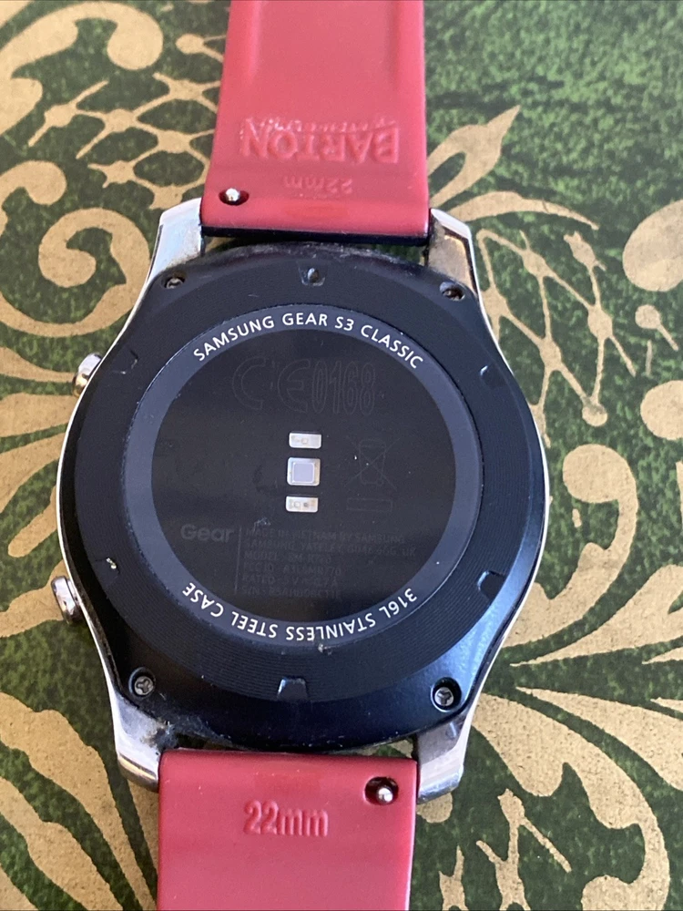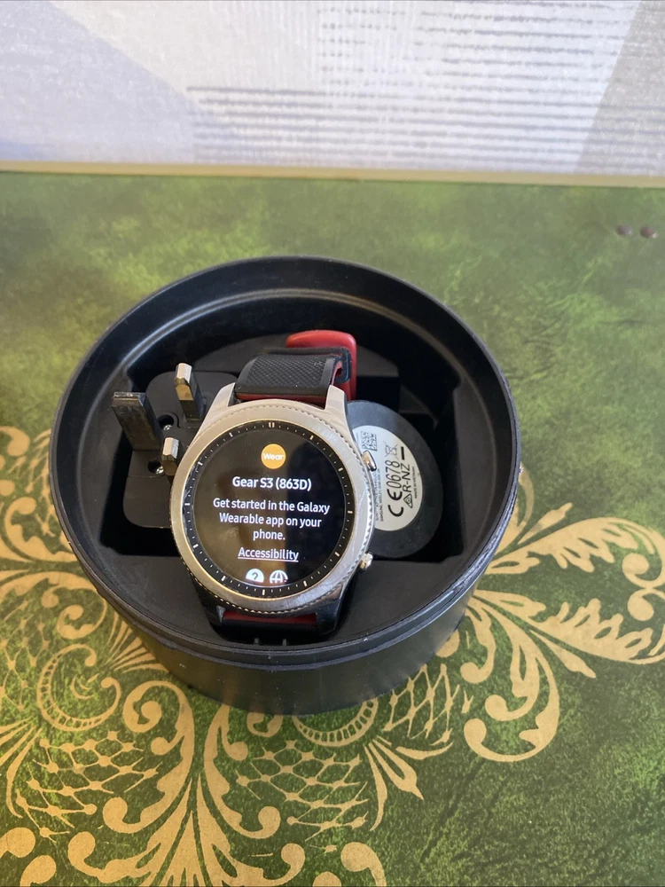 Discover the seamless blend of style and functionality with the Samsung Gear S3 Classic. Designed to complement your Android devices, this smartwatch boasts a sleek 46 mm stainless steel case and band, offering durability and a touch of sophistication to your daily routine. With the Samsung Gear S3 Classic, you can enjoy a suite of features right from your wrist. Whether you're in the office or on the go, this watch keeps you connected and in control with notifications, fitness tracking, and more, all with the intuitive touch interface that Samsung users have come to expect. There is a dead spot in the set up screen. Does not affect touch use, watch works as it should. Once set up by the user the dead spot is not noticeable