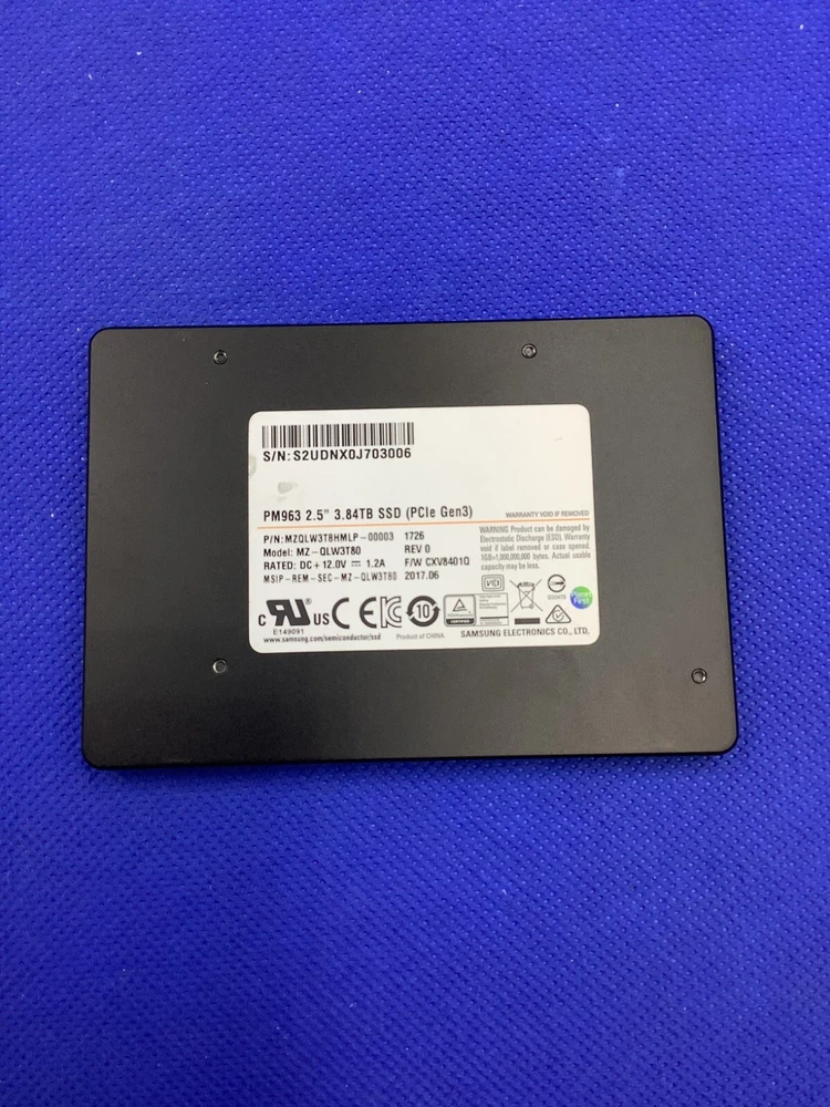 Samsung PM963 2.5" 3.84TB MZQLW3T8HMLP-00003 NVME SSD Solid State Drive Grade A . Why buy from OceanTech Our company has been serving customers since 2005, and we are proud to have built a reputation for providing top-notch products at unbeatable prices. Our refurbished computers and laptops go through a rigorous testing process to ensure they are in top working condition. We wipe all data to NIST and other industry standards, ensuring that our customers can trust the security of their devices. We hold multiple certifications, including R2v3, and we are committed to protecting the environment by properly disposing of scrap materials. Our inventory is always changing, so be sure to check back often to see what we have available. CUSTOMER SERVICE FREE RETURNS 30 or 90 DAYS WARRANTY (Please see listing for more details) ITEM CONDITION Cosmetic Condition Field (Assigned in Reuse) Functional Condition Field (Assigned in Reuse) C1 = Damaged (For materials recovery) F1 = Collectible or Specialty Equipment (Core Requirement 6.(e)(3)(A)). Collectibles are rare, vintage, and no longer manufactured or supported by the OEM. Specialty equipment are rare and specialized equipment not generally available in retail. May have broken or missing parts. C2 = Used Poor (Heavy use and age) Cosmetic blemishes are significant, such as multiple heavy dents, may require repair. Damages to latches, hinges, keyboards, etc. are prevalent. Critical parts are missing. F2 = Verified Specialty Electronics (Appendix D). Verified removed from operation with no known defects in functionality. No physical damage or defects. No corrosion. No missing parts. Part numbers and serial numbers verified accurate. C3 = Used Fair (Moderate use and age) Cosmetic blemishes are consistent with wear, including multiple dents, discoloration, and light to heavy scratches. Damage to latches, hinges, keyboards, etc. Some parts, panels, bezels, or covers may be missing. F3 = Key Functions Working (Appendix C – Test and Repair). A subset of the primary functions of the device that an ordinary user of the device expects to function are verified working through manual or software tests. Software may not be loaded or configured. Hardware required for key functions to be tested may have been removed after testing (e.g. Hard Drive). May be missing components or parts not essential to key functions. Secondary functions may not be tested or working. May not include Focus Materials (e.g. Battery) that are not working or not tested. All missing components or parts will be listed for each item. C4 = Used Good Cosmetic blemishes include scratches and/or other surface imperfections from consistent use, but equipment is in good condition overall. Minor wear of labeling may be visible. Small dents and small areas of discoloration may be present from the removal of tags No damage to latches or hinges, not any missing parts, panels, bezels or covers. F4 = Hardware Functional (Appendix C – Test and Repair). All hardware is tested and verified working through manual or software tests. No missing or damaged components or parts. Software not loaded or configured. No hardware defects. C5 = Used Very Good Cosmetic blemishes include minor scratches and/or other surface imperfections from consistent use, but equipment is in good condition.Minor wear of labeling may be visible. Minor dents and areas. F5 = Refurbished (Appendix C – Test and Repair).All functions tested and verified working through software tests. Loaded and configured with legally licensed software for full operations. Software test results are available. No hardware or software defects. C6 = Used Excellent. Overall excellent cosmetic condition. May have light scratches or other minor blemishes from normal wear. Minor cosmetic blemishes have no impact on the system’s overall functionality or performance.Fully cleaned with all non-original labels removed. No missing parts. F6 = Like New (Appendix C – Test and Repair). All functions tested and verified working through software tests. Repaired with OEM original parts. Loaded and configured with original manufacturer’s legally licensed software for full operation. Meets OEM specifications for full original functionality. Software test results are available. Zero defects. C7 = Certified Pre-Owned (Seller or Manufacturer Refurbished). Used equipment that has been fully restored to like-new condition with warranty.Fully cleaned and cosmetically repaired with no blemishes, no missing parts. C8 = Unused. New, out of box, unused equipment removed from original packaging with no signs of wear or alteration. C9 = New Open Box. New, unused equipment in original packaging where factory seals have been broken. No signs of wear or alteration. SHIPPING Enjoy free shipping on select orders within the contiguous 48 states, with the exception of Alaska, Hawaii and US territories. For these areas, please contact us for a shipping quote or choose USPS Priority Mail as an alternative. We use a variety of shipping methods such as Fedex, UPS or USPS and reserve the right to choose the most cost-effective option for you. Please note that for orders over $750, a signature is required upon delivery. We are required to ship to the address provided on your paid order. For those needing expedited shipping, send us a message with your request and we will do our best to accommodate your needs. Please note that same-day shipping is not guaranteed if the order is placed after 12pm CST. All orders will ship the following business day after payment is received. Please note that we are closed on weekends and observe Federal Holidays, following the USPS annual shipping calendar. Unfortunately, at this time, we are unable to ship outside of the USA but we hope to offer this service in the future. We apologize for any inconvenience. RETURNS We want our customers to have security and peace of mind when making a purchase. We participate in eBay’s 30 Day Money Back Guarantee progra