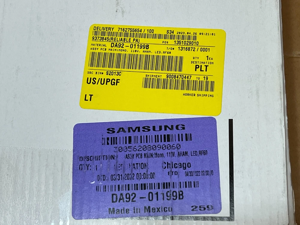 Capacity: 5.3 ft³ Finish: Matte UPC: 0751109039087 Power Source: Electric Item Depth: 1-5 in Compatible Brand: ASK, Samsung, Samsung french door, For Samsung gtin13: 0751109039087 Brand: Samsung Material: ABS Plastic Item Weight: 2 lb Type: Control Board GTIN: 0751109039087 Installation: Built-In/Integrated Color: Multicolor Suitable For: Chest Freezer, Larder Fridge, Compact Fridge Compatible Model: RF27T5201SG/AA-00, ASK, RF27T5201, Multiple, RF27T5201SR/AA, Samsung MPN: DA9201199B Features: Digital Control Panel, ADA Compliant, LED Lighting Item Height: 0.0 Power: Less than 200 W