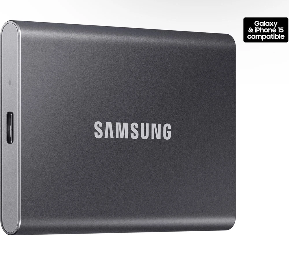 This Samsung T7 external solid state drive is a high-performance storage solution that offers up to 1TB of storage capacity and a USB 3.2 interface for fast data transfer. It is compatible with PC, Mac, and Android devices, making it a versatile option for any user. The drive boasts a read speed of 1050MB/s and a write speed of 9.5x, ensuring that you can access and transfer data quickly and efficiently. In addition to its robust storage capabilities, the Samsung T7 also features password protection, making it a secure option for storing and transferring sensitive data. Its sleek gray design and compact size make it a stylish and practical addition to any workspace or storage setup. Whether you're a professional or a casual user, this external SSD is a reliable choice for all your storage needs.