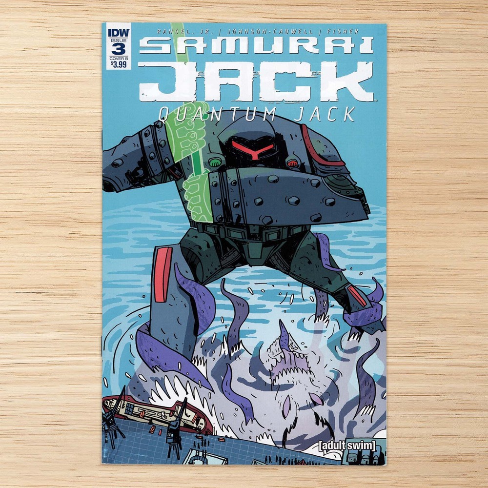 Samurai Jack: Kaiju style! It's Samurai Jack meets Pacific Rim, as the amnesiac, time/universe hopping Jack finds himself teamed up with a group of scientists, at the controls of giant battle robots, fighting the monster known as Krogo! Bas as Jack is slowly beginning to realize what's happening to him, the question remains: How and why is he jumping back and forth through time-and who's behind it all! Samurai Jack: Quantum Jack #3 Cover variant: B (Warwick Johnson-Caldwell) IDW Publishing, 2017 UPC: 8-27714-01362-7-00321 — — — — — — This listing is for a single comic issue. Item is pre-owned, in excellent condition. May have very minimal wear from gentle use. Item is individually packaged in a clear bag with board. Combined shipping is available. Excess shipping charges amounting to $2 or more will be refunded. Please feel free to message if you have any questions or requests! Thank you