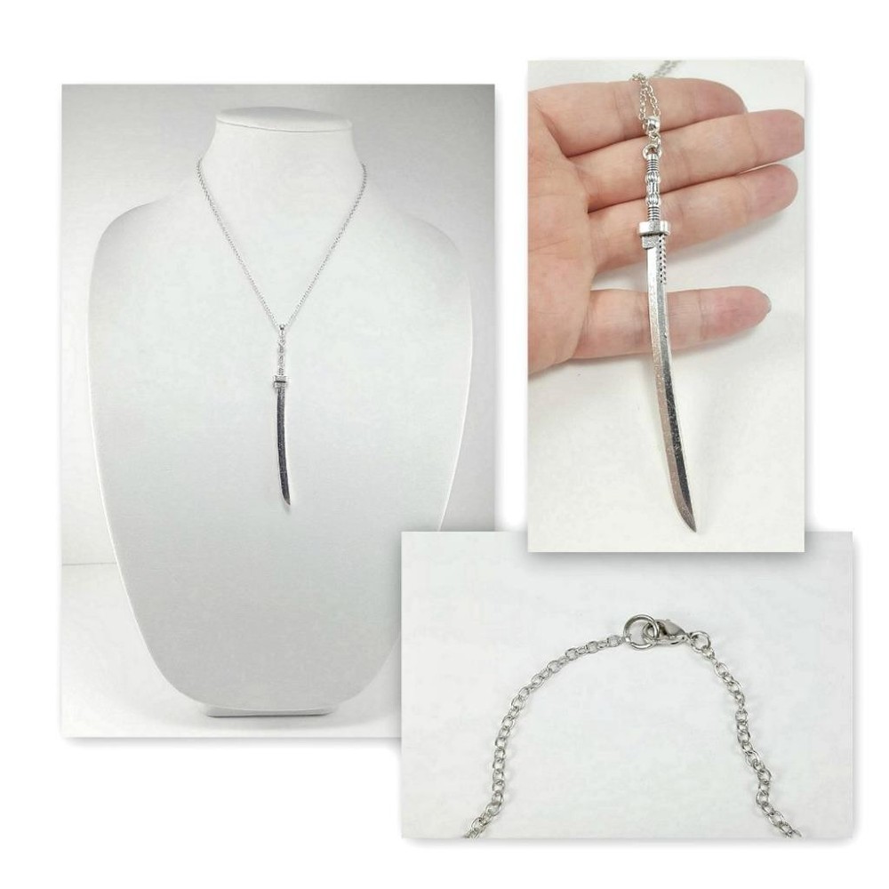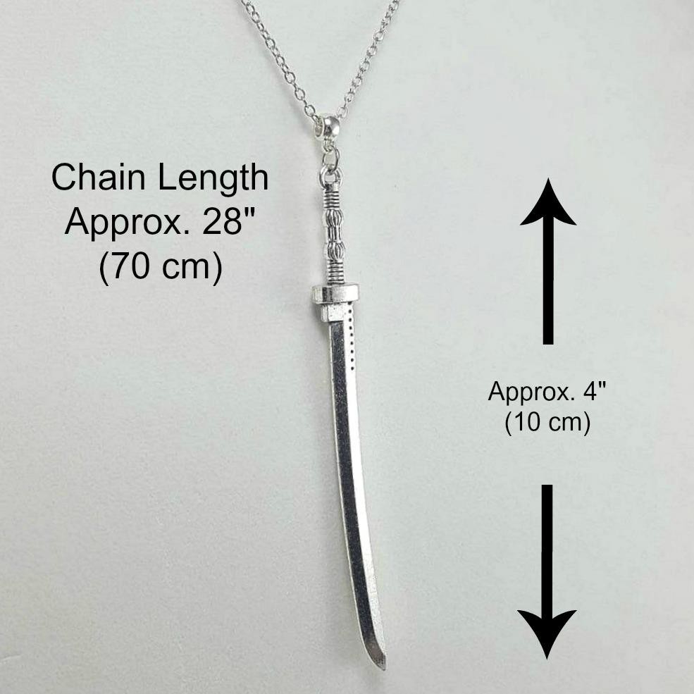 Katana Sword Necklace Katana Sword Necklace Click image to enlarge Description Details CONDITION: BRAND NEW MATERIAL : Metal Alloy DESIGN: Katana Sword PENDANT SIZE: Approx. 4" long (10 cm) CHAIN LENGTH: Approx. 28" long (70 cm) WEIGHT: Approx. 1 oz SEE OUR ENTIRE SELECTION OF UNIQUE NECKLACES IN THE JEWELRY SECTION OF OUR STORE. Shipping Shipping charges calculated to location. International Buyers International shipping charges are calculated to location in the 'Shipping and Payments' tab near the top of this page. Import duties, taxes, and charges are not included in the item price or shipping cost. These charges are the buyer's responsibility. Please check with your country's customs office to determine what these additional costs will be prior to bidding or buying. 'International First Class Mail' can take up to 6 business weeks for delivery depending on destination country, destination customs, and local or origin peak holiday shipping season. Faster 'International Priority Mail' shipping options are also available at checkout for most items. About Us The Tiny Dragon is a U.S. owned and operated 'e-retail' company. Our mission is to provide unique and affordable items of quality, promptly delivered to your complete satisfaction. Our items are shipped directly to you from our headquarters in beautiful Portland, Oregon USA. View our entire inventory at: At 'The Tiny Dragon' you are a valued customer and it is always our pleasure to serve you.