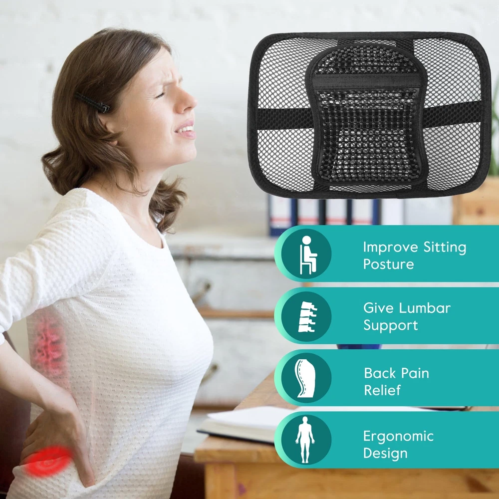 SAMYOUNG Mesh Lumbar Back Support cares enough to spend a grand on your spine! Why Is Choosing a Good Back Support Important? The average office worker spends 1920 hours sitting at work every year. This can lead to back pain, muscle tightness and inflexibility. This lumbar support promotes the maintenance of good posture, by keeping the natural curved shape of your lumbar spine, which will easing the tension and pain caused by sitting all day long, less painful and more productive. FEATURE: Adjustable straps allow you to set your comfort and support needs. Durable open-weave soft mesh cover allows to 'breathe'. Help to support the lumbar curve of your lower back to relieve back pain. Compensates for poor seating - less stress on your back, less fatigue. PRODUCT SPECIFICATIONS: Material: PP, Silicon resin, elastic rubber Size: 15.7โ x 12.2โ x 3.1โ Color: Black Weight: 9.9 Ounces ๐จ๐ฝ๐ด๐ฟ๐ฎ๐ฑ๐ฒ๐ฑ ๐๐๐บ๐ฏ๐ฎ๐ฟ ๐ฆ๐๐ฝ๐ฝ๐ผ๐ฟ๐ -- The upgrade Samyoung mesh lumbar back support added 2 adjustable vertical straps where you can easily decrease or increase the bend of the frame, provides stronger support to fit your lumbar better also keep the back support in place. ๐๐๐บ๐ฏ๐ฎ๐ฟ ๐ฆ๐๐ฝ๐ฝ๐ผ๐ฟ๐ ๐ฅ๐ฒ๐น๐ฎ๐ ๐ฒ๐ ๐ฌ๐ผ๐๐ฟ ๐๐ฎ๐ฐ๐ธ -- The breathable mesh back support with an ergonomic adjustable tension straps, it provides the gentle reinforcement help for correcting your sitting posture, relaxing your back and lumbar spine. ๐๐ฟ๐ด๐ผ๐ป๐ผ๐บ๐ถ๐ฐ ๐๐ต๐ฎ๐ถ๐ฟ ๐๐๐๐ต๐ถ๐ผ๐ป๐ -- Samyoung upgrade lumbar support can fit your lumbar better with adjustable high elastic bands, it can help you correct your sitting posture and support your lumbar effectively, relieve the discomfort caused by sitting or driving for a long time. ๐๐ฟ๐ฒ๐ฎ๐๐ต๐ฎ๐ฏ๐น๐ฒ ๐ ๐ฒ๐๐ต ๐๐ผ๐ป๐๐๐ฟ๐๐ฐ๐๐ถ๐ผ๐ป -- Made of double-layer mesh fabric that keeps your back and waist cool and breathable. Furthermore, mesh lumbar back support has many beads can massage you back muscle for relaxing. ๐๐ถ๐ ๐ข๐ป ๐ ๐ผ๐๐ ๐ฆ๐ฒ๐ฎ๐ -- The lumbar support can fit perfectly for any seats with high elastic bands, easy to take and removable. Our mesh lumbar support can be used on office chairs, arm chairs, sofas, car seats or any chair with a backrest.
