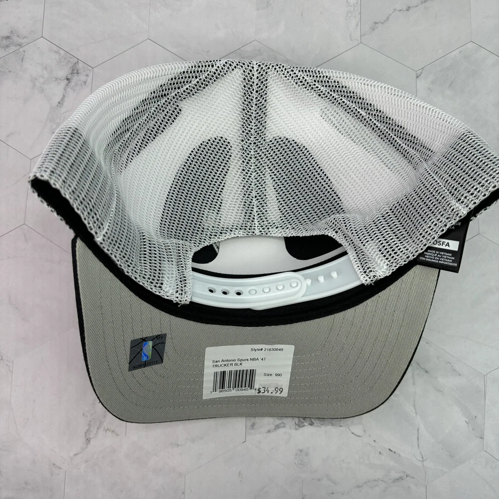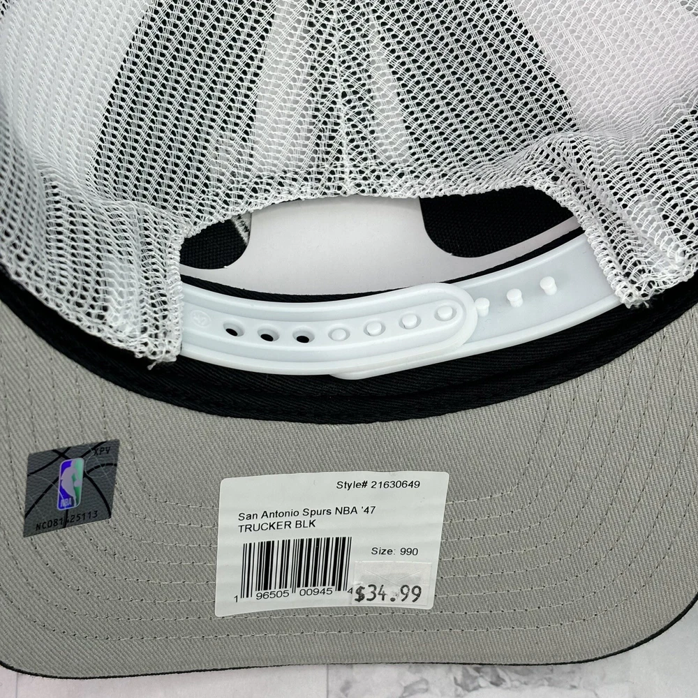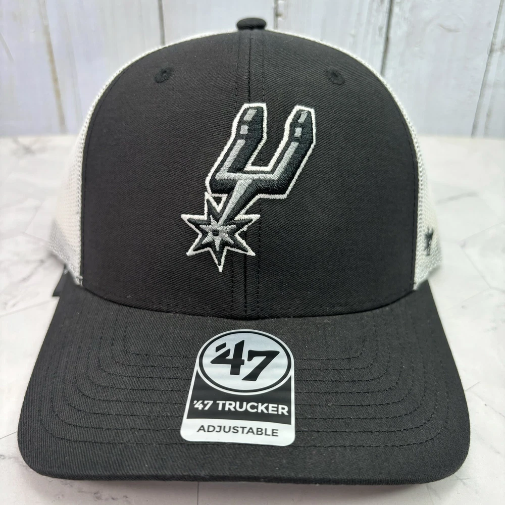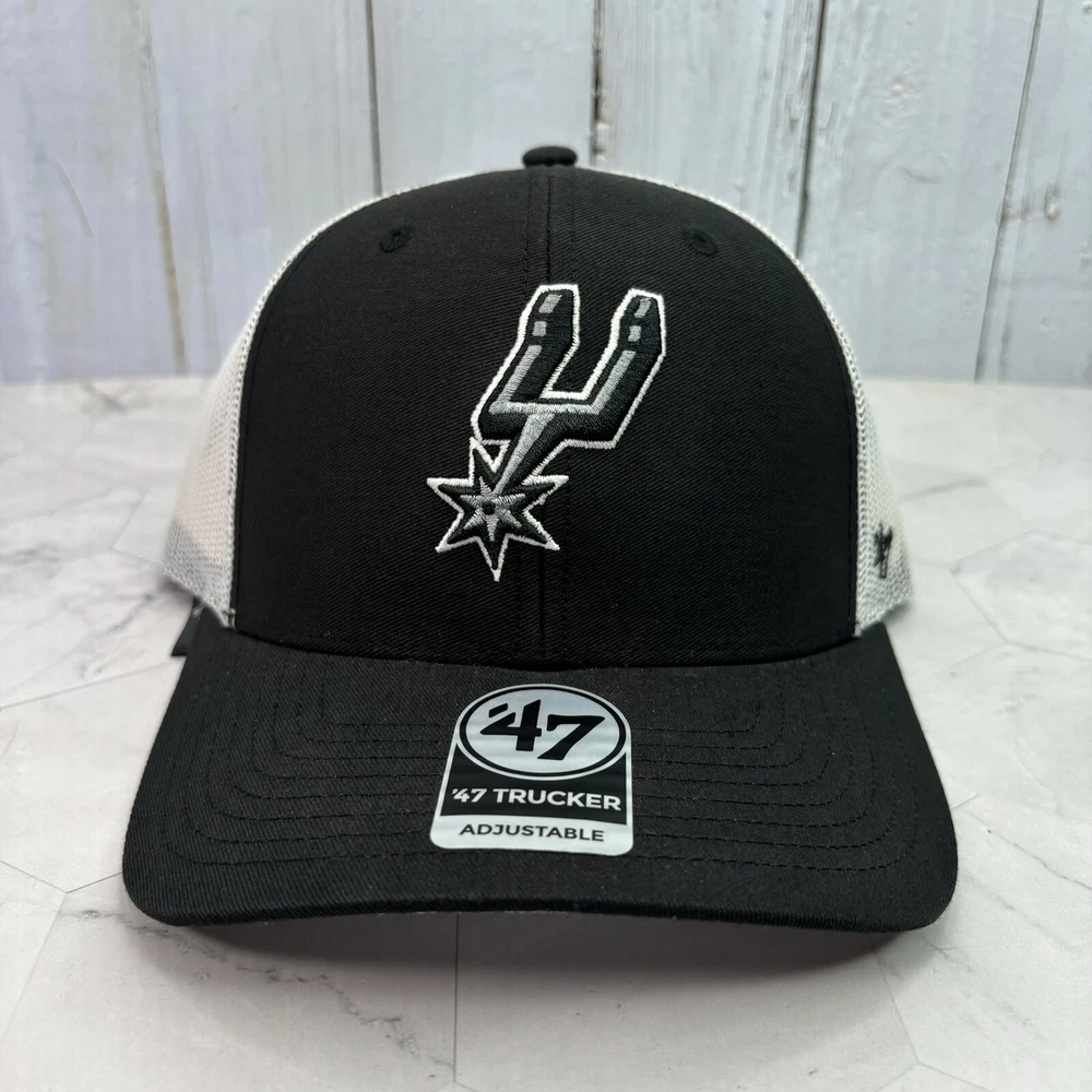 San Antonio Spurs ‘47 Brand Trucker Black White Adjustable Snapback Hat OSFA Cap
