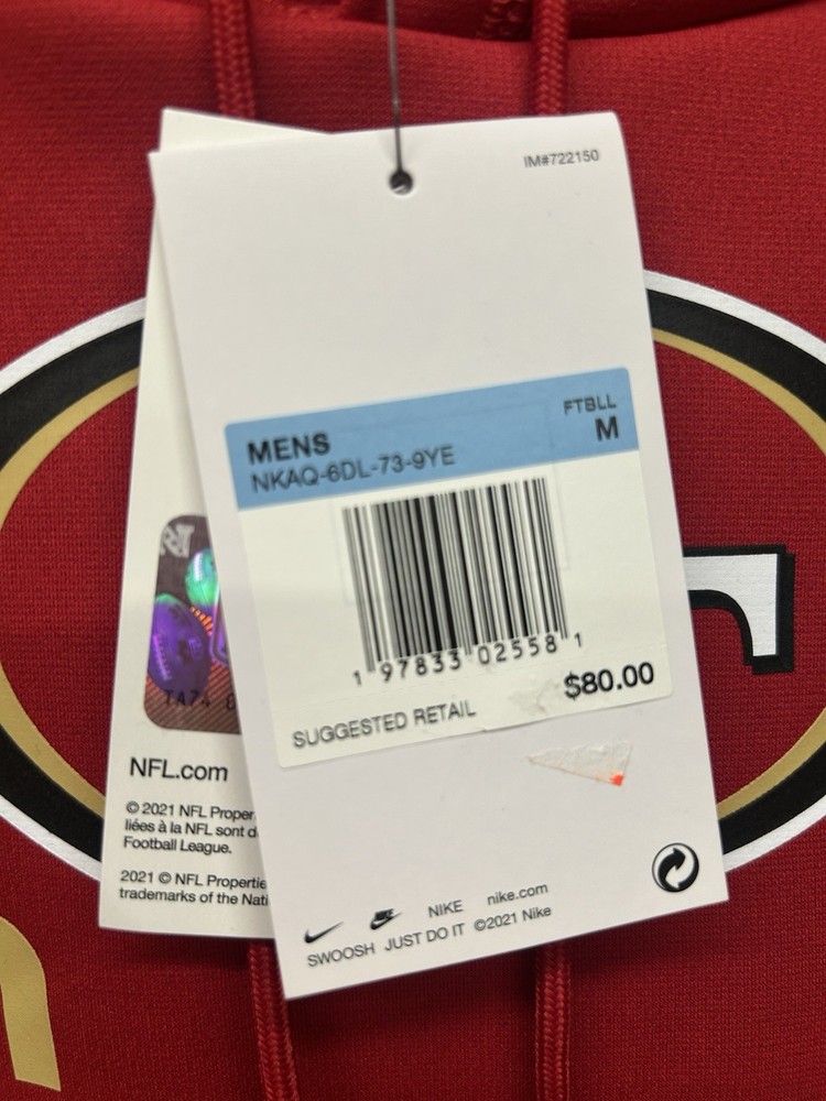 Gender:MenProduct:SweatshirtOfficially Licensed:YesCountry of Origin:ChinaTeam:San Francisco 49ersLeague:National Football League (NFL)Event/Tournament:NFLBrand:NikeSize:MSport:FootballColor:RedPre & Post Season:Regular Season
