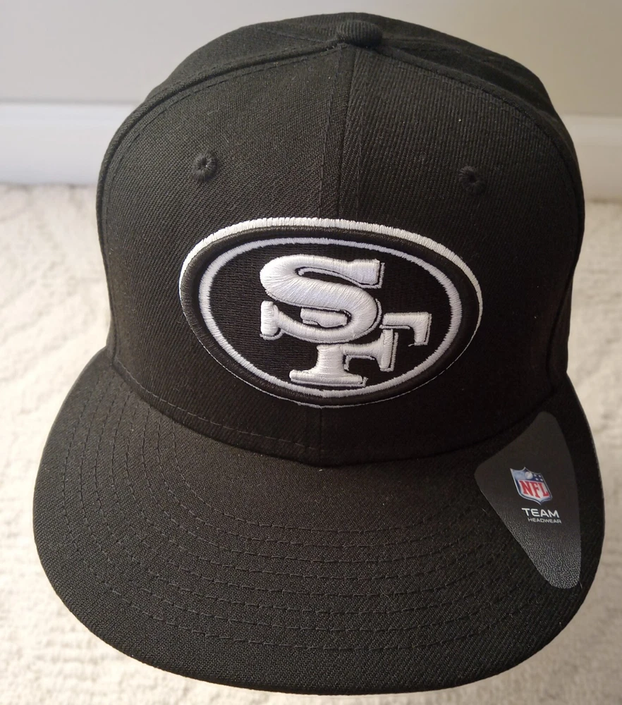 Vintage San Fransisco 49ers SF Silver Logo on all black hat New Era 59 Fifty Fitted Size 71/8. The hat is new in excellent condition said and appears to have never been worn. Additional photos upon request. Hat will be shipped in safe and secure packaging.