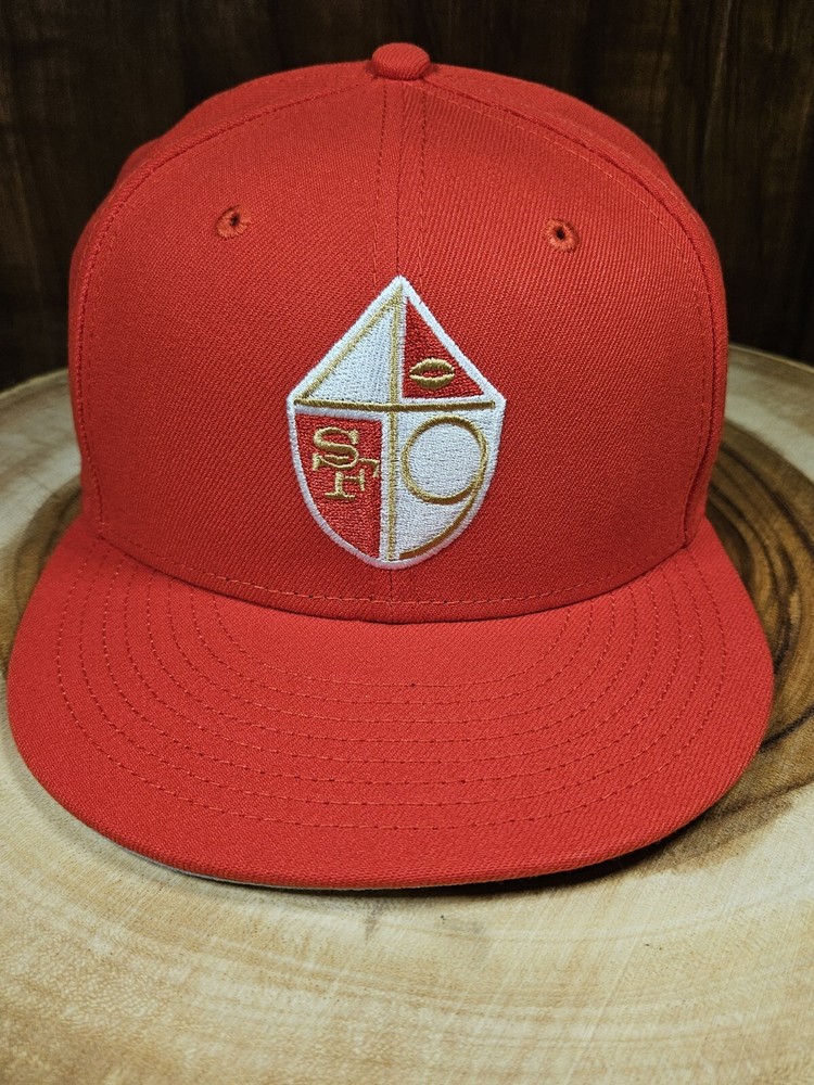 Show your support for the San Francisco 49ers with this stylish New Era 59Fifty Fitted Hat. This hat is perfect for any die-hard NFL fan. The hat features the iconic 49ers shield logo, making it easy to show your team spirit. The hat is designed for men and comes in a size 7 1/2, ensuring a comfortable fit. This NFL football hat is a must-have for any 49ers fan. It is made of high-quality materials and is perfect for wearing to games or as a part of your everyday wardrobe. The hat is great for any occasion and is sure to turn heads. Get yours now and show your support for the 49ers!