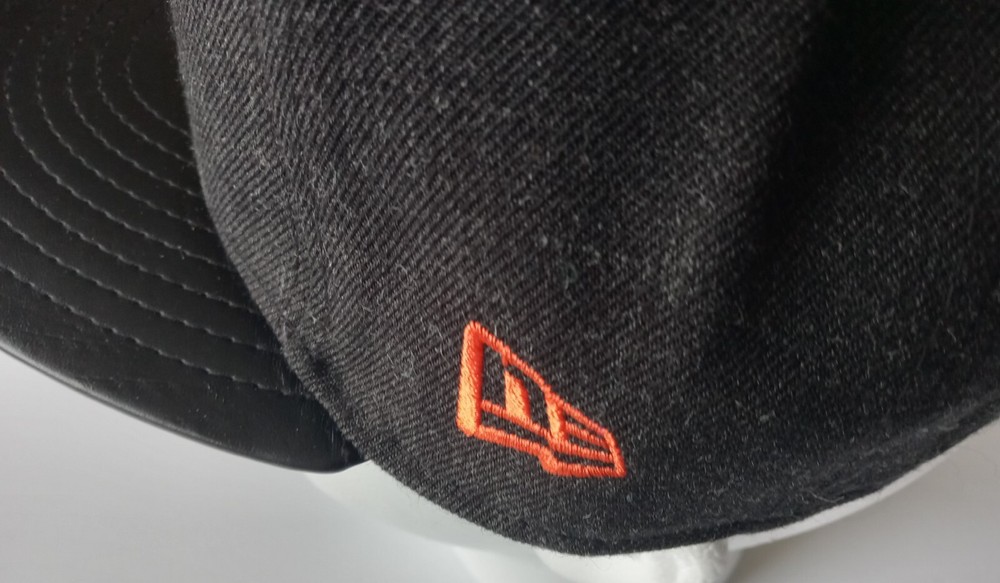 Nice San Francisc Giants Authentic Merchandise 59Fifty New Era Fitted Hat Size 71/8. The hat is all black with the Raised orange SF logo on front of hat, orange New Era logo on side of hat and Major League logo on back. The hat has the poly glossy black brim. The hat also has the gold 8x World Series Pin attached to front of the hat. The hat is in great condition with no marks, stains, scratches, torn or missing parts. Additional photos upon request. Hat will be shipped in safe and secure packaging.