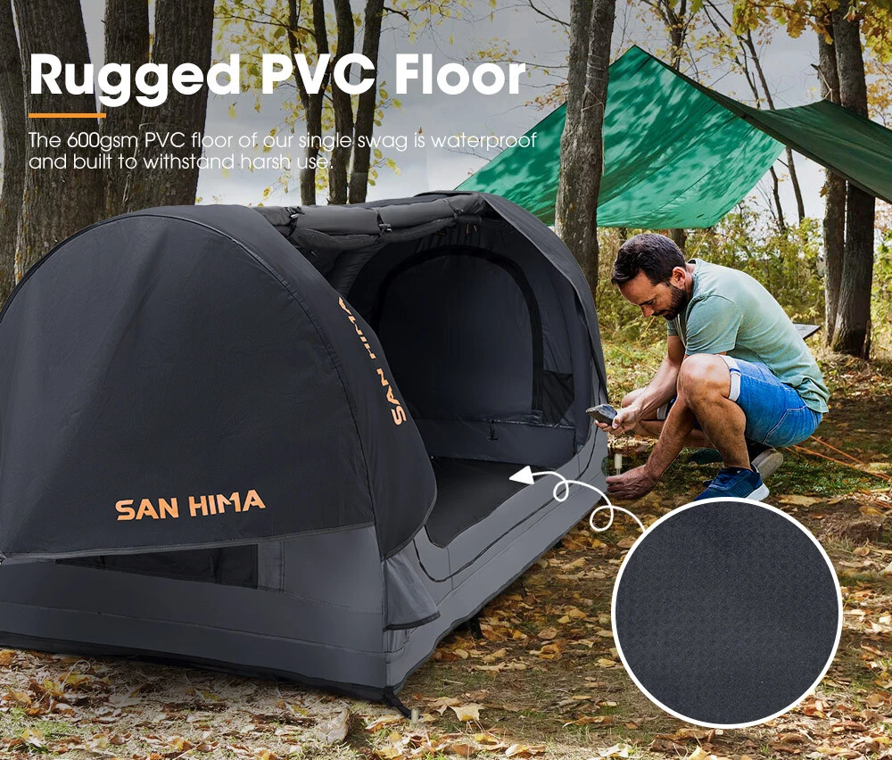 Discover the future of swag with the air pole swag by San Hima. Say goodbye to cumbersome pole assemblies and embrace the ease and speed of setup with our innovative air poles. Experience unparalleled comfort, durability, and a hassle-free camping adventure with our single swag. With our air swag, instant setup is a reality. Just connect the hurricane pump to the inflation point, and you're ready to go. Crafted from 245gsm PU-coated polyester-cotton and 600gsm PVC floor, our swag ensures strength and reliability. Plus. It's impressively larger in size compared to aluminum poles swags while being lighter at just 19.75 lbs. Stay shielded from the elements with its UPF 50+ UV protection and a 3,000mm waterproof rating, complete with rain covers and waterproof tape sealing to keep you dry in Free Shipping Most Items Visit Our Store menu mobile Automotive & 4x4 Truck & Trailer Parts Sports & Outdoors Home & Garden Help Key Features Easy Setup & Storage: Effortlessly set up and deflate our swag with included hurricane air pump using a single inflation point and the air valve, and neatly store it using included bags. Roomy yet Lightweight: Impressively larger in size to aluminum poles swag while lighter at 19.75 lbs for easy storage, and equipped with 4 inner storage pockets for your essentials. Deluxe Air Mattress: Inflated effortlessly with the included electric air pump, our mattress offers effortless storage, easily rolled up with your air swag. and extra comfort at 6.69 in thick. Exceptional Durability: Our swag, crafted from 245gsm PU-coated polyester-cotton, provides 3,000mm waterproofing, UPF 50+ UV protection, and comfort in any weather. Enhanced Waterproofing: Rain covers fitted over the air poles and waterproof tape sealing every seam of the swag provide extra protection, ensuring it stays dry during intense rain. Indestructible Air Poles: Made from TPU and covered with 420D Oxford fabric, our puncture-resistant air poles are virtually indestructible. Rugged PVC Floor: The 600gsm PVC floor of our single swag is waterproof and built to withstand harsh use. Ventilated & Bug-Free: Enjoy refreshing and bug-free environment with 2 full-length doors and 2 zip-down windows featuring 125gsm mesh. Two-way doors ensure easy access. Extendable Awning: Adapt to unpredictable weather with ease by rolling away or extending 2 large storm covers with poles for fully protected space in unfavorable conditions. Shoe Changing Area: Conveniently change your shoes in a dedicated area before entering the interior of our San Hima swag, ensuring cleanliness and comfort. Warranty 2 Years Warranty What's In Box 1 x San Hima Air Swag Single 2 Sets of Poles 8 x Pegs 4 x Guy Ropes 1 x Hurricane Pump 1 x Electric Pump 2 x Storage Bags 2 x Carry Bags 1 x Air Mattress (Includes a Mattress Repair Kit and a Valve Cap) 1 x User Manual Specifications Sleeping Capacity: 1 Person External Dimensions: 86.61L x 43.31W x 39.37H in Internal Dimensions: 82.68L x 39.37W x 35.43H in Mat Dimensions: 77.95L x 37.40W x 6.69H in Swag Material: 245gsm PU-coated polyester-cotton Mesh: 125gsm Insect Mesh Floor Material: 600gsm PVC Air Pole Material: TPU Covered With 420D Oxford Fabric Waterproof Rating: 3,000mm UV Rating: UPF 50+ Package Size: 23.82 in x 21.06 in x 12.60 in Package Weight: 37.04 lbs Delivery Returns Payment About Contact Delivery Please note that deliver to PO BOX address is not available for bulky items. Please make sure you have provided a correct physical address during checkout on products of excessive size. To aim in smooth and speed of delivery, ensure your address is correct during the checkout. Changes to address after payment made may not be considered. Please refer to Returns for more information Please allow 5 to 9 business days for product to arrive. We highly recommend to provide an answerable contact number and email address as we do make calls and send emails to follow up item delivery status. Returns We accept returns. Please contact our customer service immediately if you have changed your mind and wish to cancel the order. Simply contact us within 30 days to be guided through getting a refund. This change of mind return policy does not affect your rights in respect of faulty items. (Please refer to the product’s warranty terms). In case of change of mind, returned items must be in resalable condition and returned in their original packaging with all accessories. Please note that we may not be able to cancel an order if it is already in transit until it arrives. You will need to send the product back on your own cost and applicable freight charge and 10% restocking fee will be deducted from your refund to reimburse the initial postage and handling cost. Please do not return the product prior to getting instruction from our customer service to avoid the risk that your returned item is not identifiable. Payment SAN HIMA offers varies payment options. We accept Visa & MasterCard PayPal Security We do not store your credit card details anywhere on our system. We use third parties gateway such as PayPal with PCI DSS Compliant (Payment Card Industry Date Security Standard) for security payment. We have networking security software such as VPNs and firewall About Welcome to SAN HIMA online store. Headquartered in Australia, San Hima proudly offers an extensive range of overland solutions. Our diverse offerings include cargo systems, towing solutions, caravan and trailer parts as well as car camping equipment. Designed to accompany you on your journeys and enhance your performance when conquering the peaks, our products are crafted for those with a passion for exploration. Contact If you have any queries regarding shopping with San Hima , please contact us Categories 4x4 & Ourtdoors Truck & Trailer Parts Home & Garden Sports & Outdoors Other Customer Service About Us Contact Us © Copyright 2021-2024 VICOFFROAD INC.(EIN 87-2480979) All Rights Reserved.