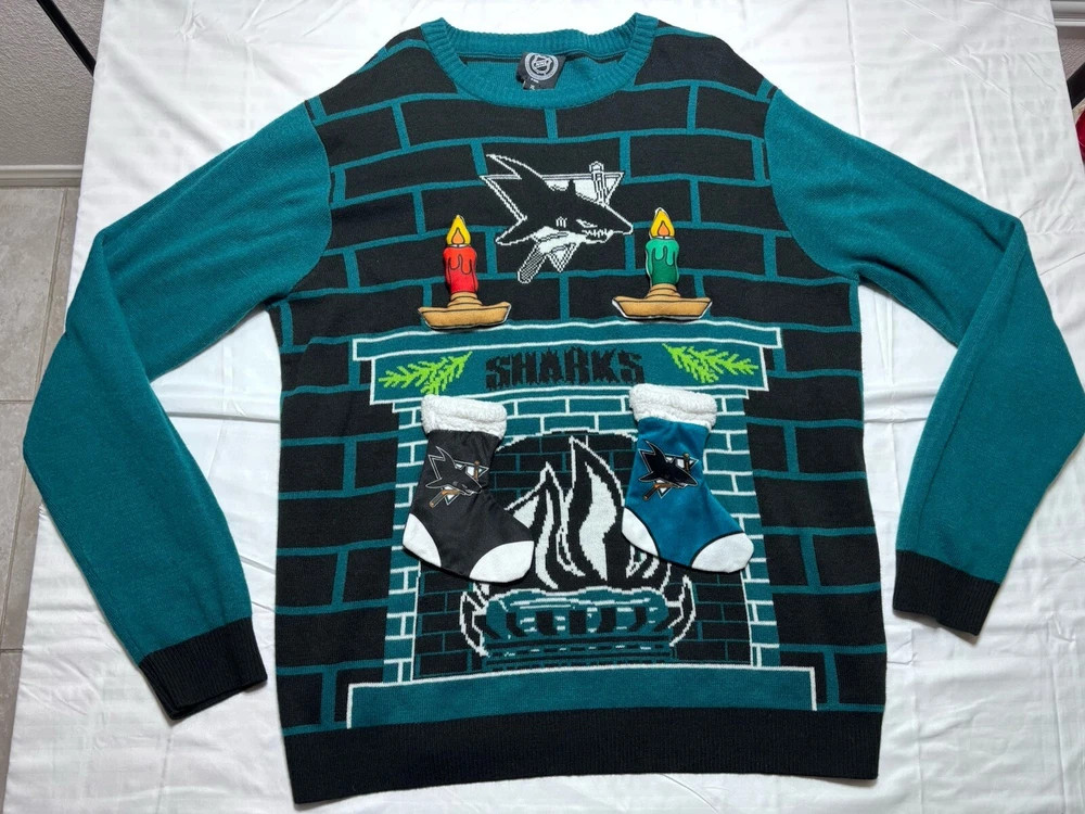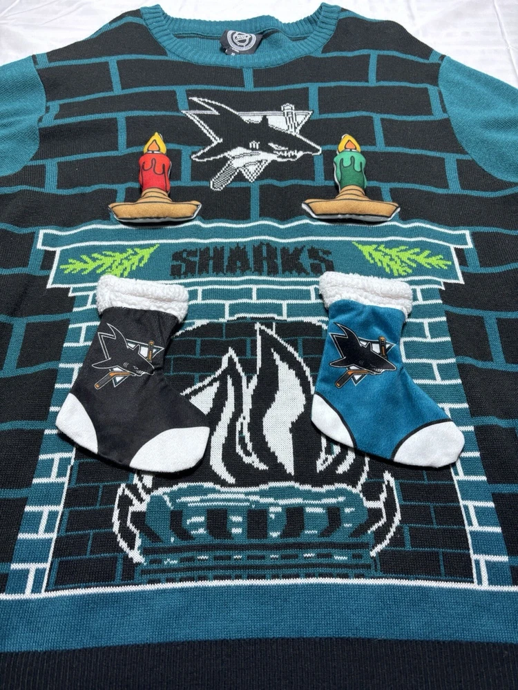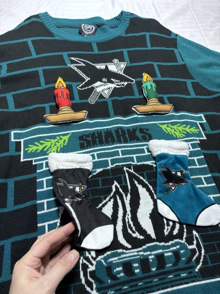 San Jose Sharks Promo Jersey 3D Blue Size Mens XL Ugly Christmas Sweater Version. Pre owned shipped with usps ground advantage.