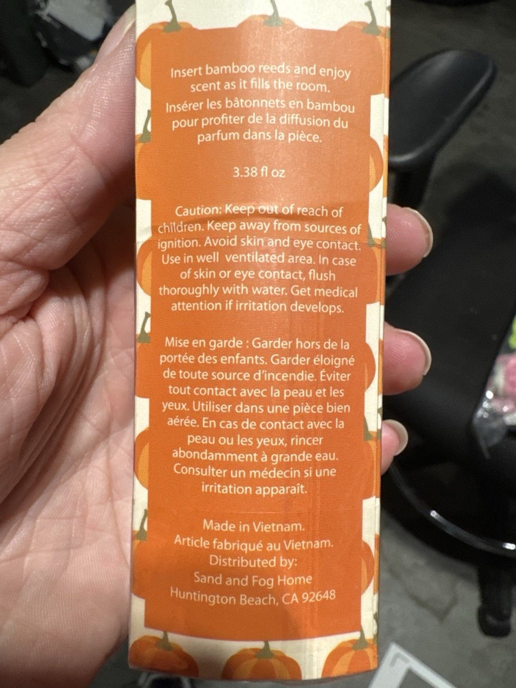 Bring the warmth of fall into your home with this Sand + Fog Pumpkin Spice Reed Diffuser. Enjoy the comforting aroma of pumpkin, cinnamon, and vanilla — perfect for cozy autumn days or year-round ambiance. Simply insert the included bamboo reeds and let the fragrance gently fill your room. ✨ Ideal for bathrooms, bedrooms, offices, or as a seasonal gift! 🎁 Beautifully packaged – makes a great present for candle and scent lovers. Features: • Long-lasting fragrance • Elegant glass bottle with wood-style cap • Easy to use – no flames or plugs needed • Inspired by the California coast 📦 Ships fast and packaged with care!