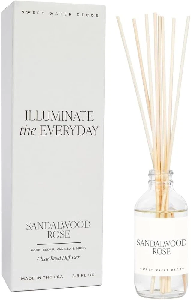 Store New Arrivals Add to Favorite View Feedback Contact Sandalwood Rose Reed Diffuser Set - Rose, Wood, Amber, Vanilla, & Musk Scented Diffusers - Scent Diffusers for Home, Long Lasting Fragrance, Made in the USA Description Item model number R146C Color Clear Item Weight 12.3 ounces Batteries required No Scent Name Sandalwood Rose Scent Sandalwood Rose Package Dimensions 10.91 x 3.54 x 3.5 inches Material Type Free Lead Free, Phthalate Free SMELLS LIKE - A sophisticated blend of earthy warmth and floral elegance—lush rose and deep, wine-like notes intertwine with rich cedarwood, smooth vanilla, and soft musk. The Sandalwood Rose Reed Diffuser fills your space with a timeless, romantic aroma, perfect for creating a cozy, inviting atmosphere in any room. REED DIFFUSER INFO - 3.5 oz | Last 3+ Months | Diffuser Oil Color May Vary | If Scent Starts to Become Faint, Turn Reeds Upside Down MADE IN USA - Handmade in Pittsburgh, PA | Gluten Free, Lead Free, Phthalate Free | Non- toxic Cruelty Free Premium Fragrance Oils PERFECT GIFT - If you love our spa reed diffusers, share the love and give the perfect gift for mom, sister, co-worker, friend and everyone in between. This makes a great Mothers Day gift, birthday gift, graduation gift, housewarming gift and more! STYLISH & VERSATILE - Our reed diffusers for home are both a décor piece and a fragrance essential, effortlessly complementing any style—from modern to rustic to farmhouse. Ideal for entryways, bathrooms, or any space that needs long-lasting scent without a flame, they’re the best smelling reed diffusers to elevate your home with ease. Product Description We are your one-stop destination for an extensive selection of encouraging and memorable products. From cozy candles that create the perfect ambiance to stylish mugs that make your morning coffee extra special and even reed diffusers that bring tranquility to your space—our range of high-quality products has something for every moment in your life. Non-Toxic Diffusers for Home Our reed diffusers are proudly made with premium ingredients and fragrances, giving you peace of mind and making your space look and smell great. Display our reed diffusers in your kitchen, bathroom, on top of your dresser, or office for long-lasting scents. The video showcases the product in use. The video guides you through product setup. The video compares multiple products. The video shows the product being unpacked. Reed Diffusers Sweet Water Decor Merchant Video Set It & Forget It Effortless style and fragrance infused into your home. Reed diffusers offer a stylish, flame-free solution to fill your home with captivating fragrances. Place them in any room to create your own fragrant oasis effortlessly. From unique premium fragrance oils to giftable vessel options, no detail goes overlooked. Add to Cart Add to Cart Add to Cart Add to Cart Customer Reviews 4.2 out of 5 stars 1,706 4.3 out of 5 stars 316 4.3 out of 5 stars 116 4.3 out of 5 stars 116 Price $27.99 $ 27 . 99 $29.99 $ 29 . 99 $29.99 $ 29 . 99 $29.99 $ 29 . 99 Longevity 4+ Months 4+ Months 4+ Months 4+ Months Poured in the USA ✔ ✔ ✔ ✔ Premium Fragrance Oils ✔ ✔ ✔ ✔ Gluten, Lead, Phthalate Free ✔ ✔ ✔ ✔ Non-Toxic ✔ ✔ ✔ ✔ Number of Reeds Included 8 8 5 5 Ounces 3.5 fl oz 3.5 fl oz 3.5 fl oz 3.5 fl oz Safe & Sustainable Our reed diffusers are a stylish flame-free way to infuse high-quality fragrances into your home. Poured in the USA All of our reed diffusers are blended & poured by our team in Pittsburgh, PA. Crafted with Care From unique premium fragrance oils to giftable vessel options, no detail goes overlooked. 4+ Months of Fragrance Each reed diffuser will last 4+ months and reeds can be flipped if the scent starts to fade. Perfect Gift From candles to motivational mugs, reeds, journals, & more, our products make the perfect gift. 1 Safe & Effortless 2 Poured in the USA 3 Crafted with Care 4 4+ Months of Fragrance 5 Perfect Gift The Perfect Match to Our Reed Diffusers Candles Over 2 million candles have been enjoyed since 2017. Sit back, relax, and let your favorite scent fill your space. Mugs Multiple styles for you to cozy up with in front of the fireplace with. Trays Perfect for soap dispensers, candles, jewelry, reed diffusers, and so much more. Stationery Stay relaxed with our reed diffusers at work or at home - and use our motivational and inspirational stationery. ABOUT US We offer the best prices around on high quality products. Our E-store includes media such as books, movies, music and games while offering electronics, toys, sporting apparel, clothing, tools, general home, garden items and more. SHIPPING We are always working hard to ensure your package arrives as soon as possible. Please understand that some factors like weather, high postal traffic, and the performance of shipping companies are outside of our control. We offer free shipping to the lower 48 states and ship within 2 business days of payment, usually sooner. We do not accept P.O. Boxes. Please provide a physical address. For shipping outside of the continental USA, we only use eBay's Global Shipping Program.The item is shipped to KY and then sent to the rest of the world. International customers are responsible for all duties and taxes. Continue to check out in order to calculate costs for shipping the item to your country. Messages regarding eBay's Global Shipping Program MUST be directed at eBay EXCLUSIVELY. RETURNS We offer a 30-Day Return Policy on items which you are not completely satisfied with. You have the option for a full-refund or an exchange of the item. No returns are available on items shipped outside of the USA. PAYMENT We accept PayPal. CONTACT US This page content is yet to come Please ad us to your favorite seller and visit again later Thank You CUSTOMER SATISFACTION We try our very best to make sure every customer is completely satisfied. If there's a problem, message us! We're happy to help. WE ACCEPT Copyrig