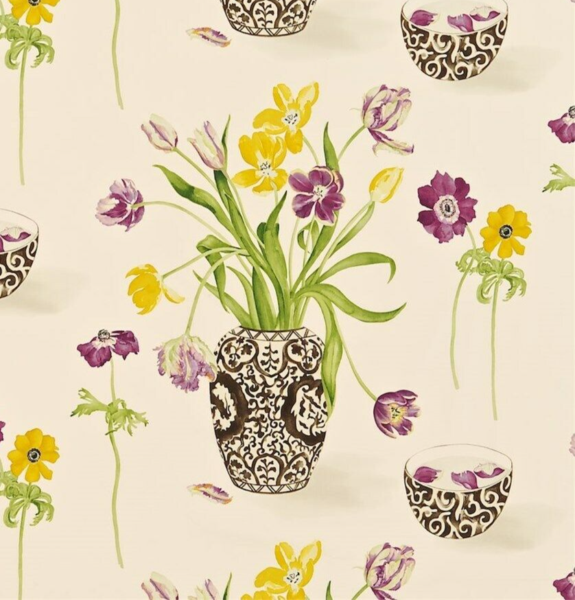 SANDERSON FABRIC DESIGN A PAINTERS GARDEN FROM A PAINTERS GARDEN COLLECTION COLOURWAY 201 CITRUS/BLACKCURRANT PATTERN REPEAT 66CM YOU ARE BUYING A PIECE OF FABRIC APPROXIMATELY 3.2 METRES IN LENGTH 1.37 METRES WIDE. 100% COTTON SUITABLE FOR CURTAINS,BLINDS OR CUSHION COVERS