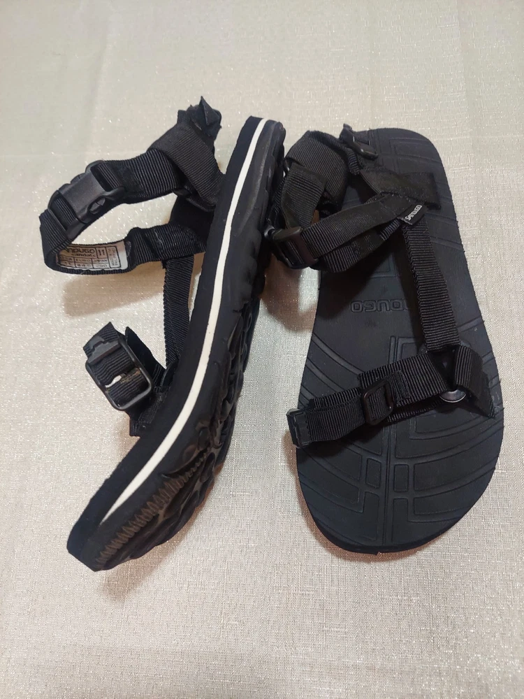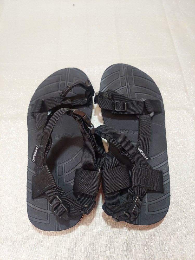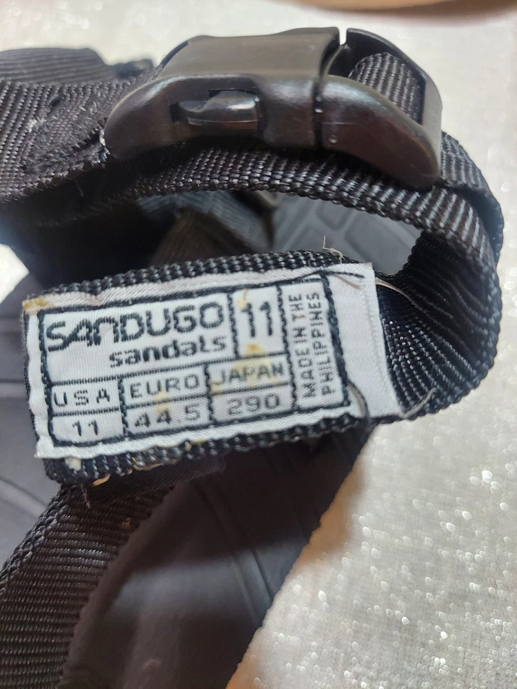 The Sandugo Men's Sandals in size 11 and color black are a stylish and comfortable choice for outdoor activities or casual wear. Made with a durable rubber outsole, these sandals feature a strap closure and a logo accent. With a focus on comfort, these sandals are designed for summer and spring seasons, ensuring your feet stay dry and supported throughout the day. Whether you're hitting the beach or running errands, these Sandugo sandals provide both style and functionality for the modern man.
