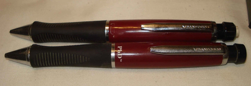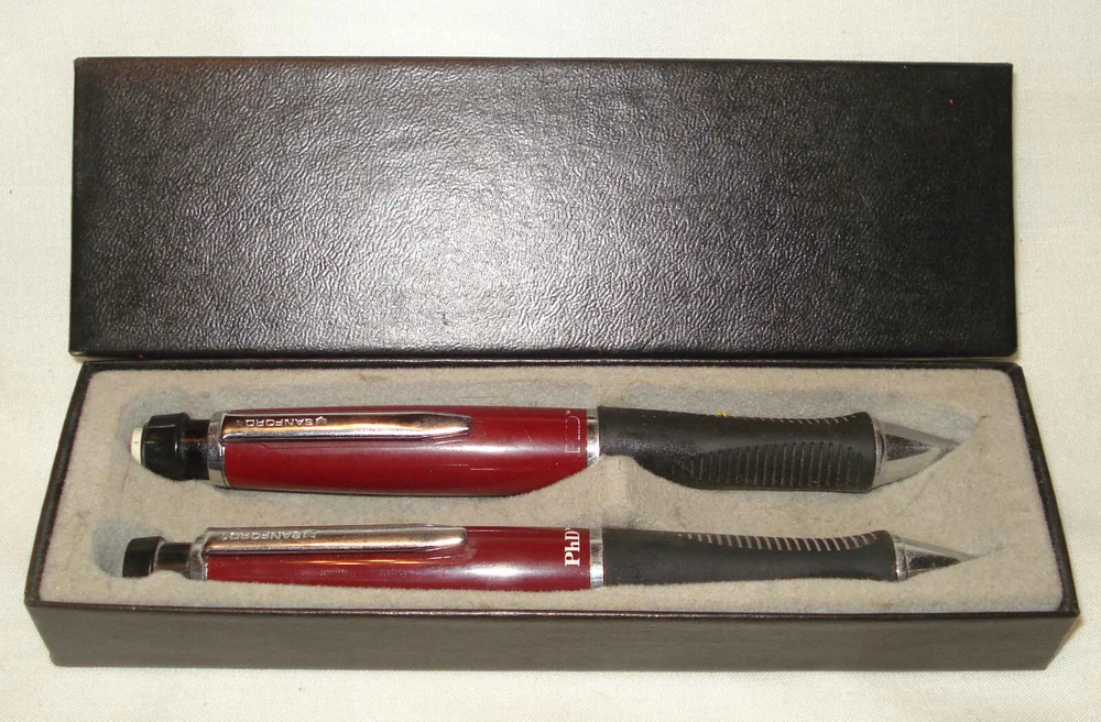 Sanford PhD Maroon Silver Fat Mechanical Pencil & Ink Pen Set w/Box