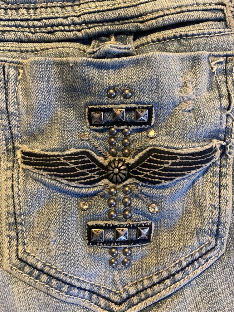 Sang Real Womens Waist 32 Low Rise Denim Blue Jeans Distressed Embellished. Please feel free to contact me anytime and thank you kindly for your business and prompt payment