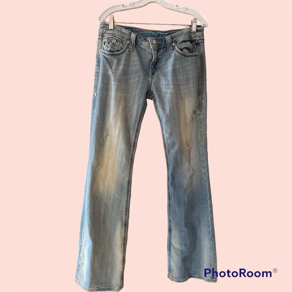 Sang Real Women's Low Rise Distressed Embellished Blue Jeans Size 32
