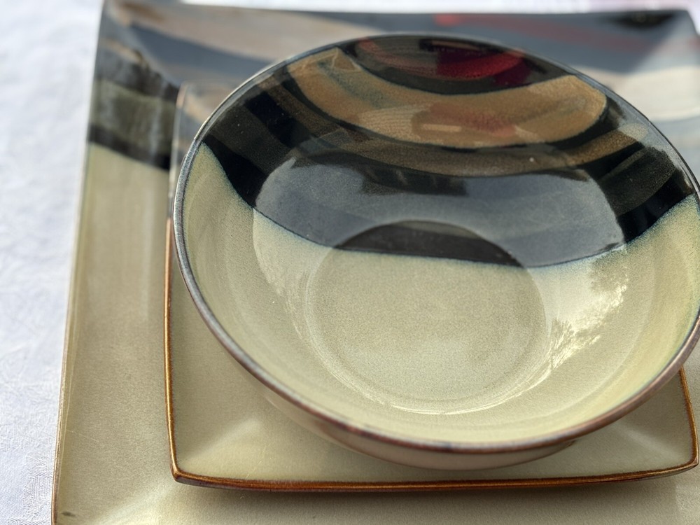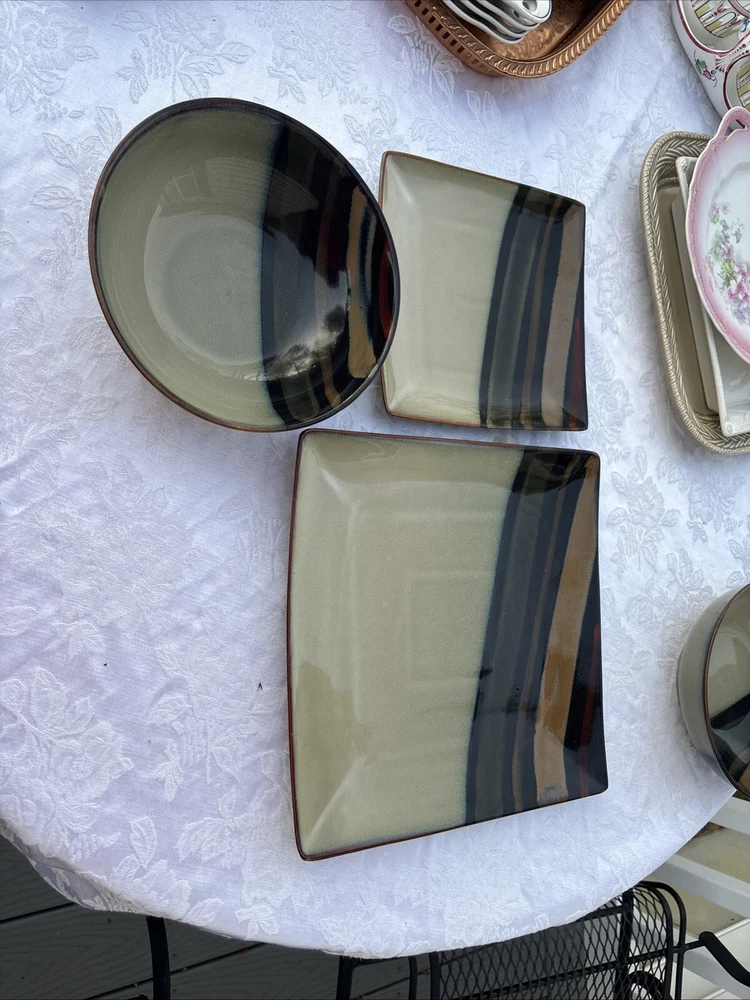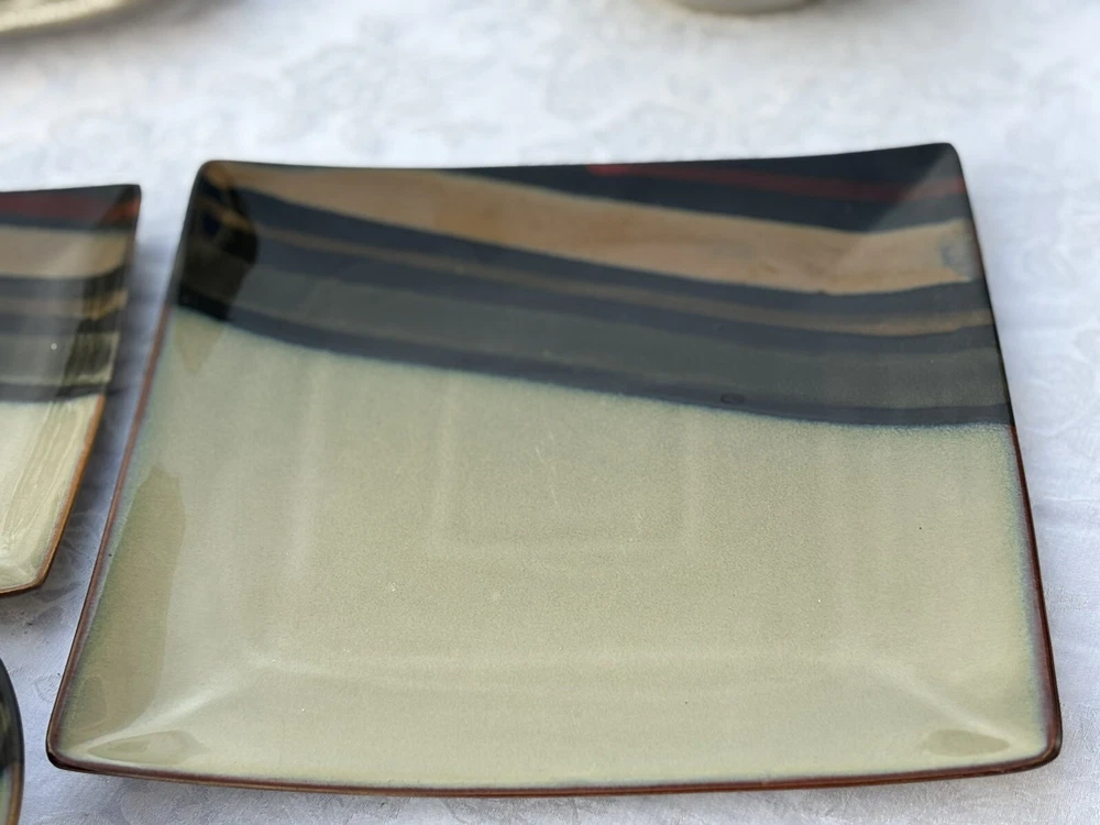 Sango Avanti Block Square Dinner Plates Salad Bowl Set Lot of 6 #4721