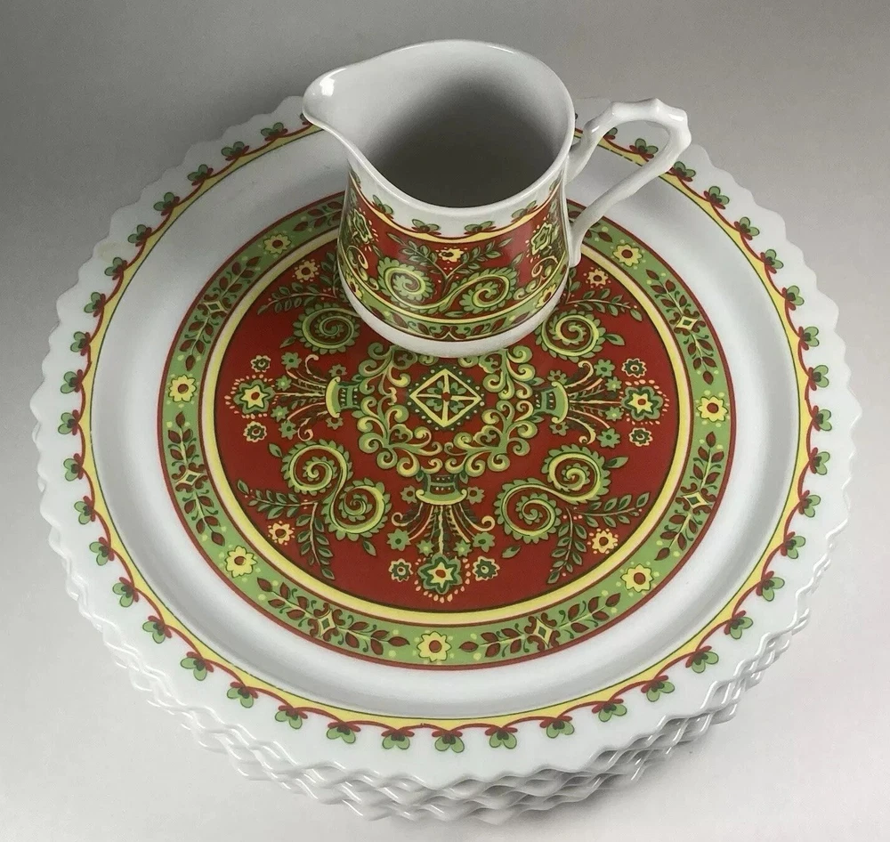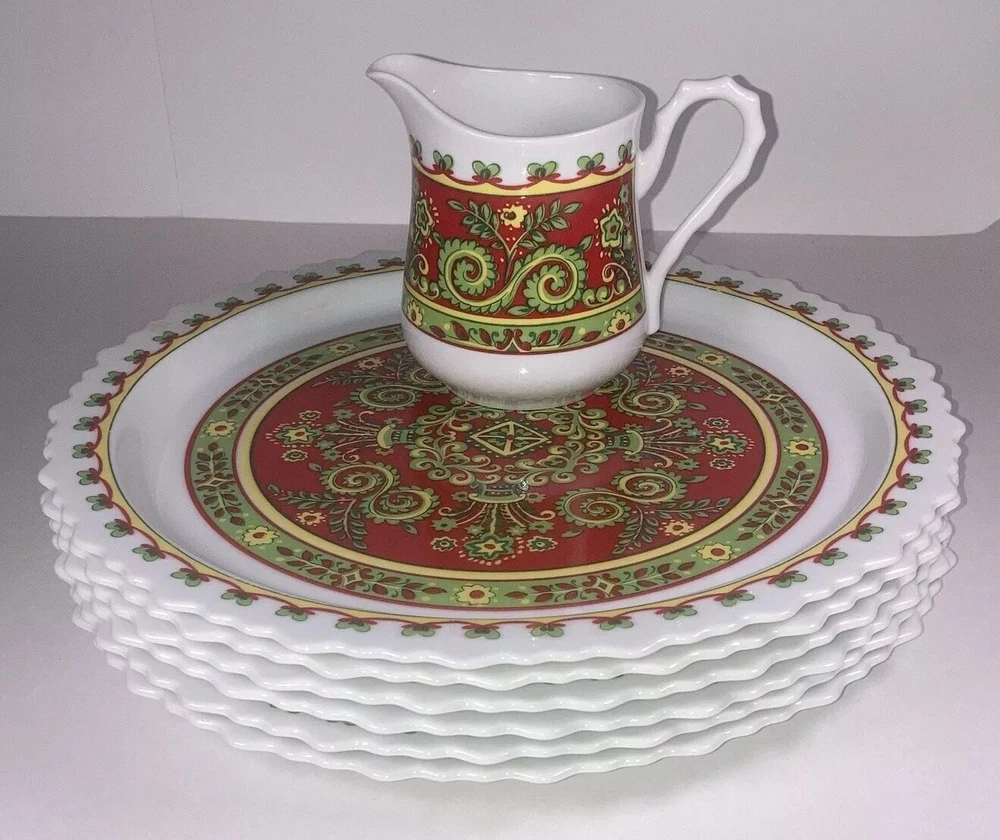 This rare and very hard-to-find Sango Belgrade creamer is a perfect addition to your collection. Featuring its signature elegant design, this piece is made in Japan and remains in excellent condition with no cracks or flaws. A true gem for vintage dinnerware enthusiasts! We are selling **sets of 2 plates**, but feel free to contact us about purchasing a larger set or including the creamer with matching plates. Currently, we have 6 plates and 1 creamer available. *Please see photos for additional details and ask any questions before purchasing #SangoBelgrade #VintageDinnerware #MadeInJapan #RareFind #CollectiblePlates #CeramicCreamer #VintageChina #AntiqueDinnerware #SangoChina #HomeDecor #DishwareCollection #CollectorsItems #VintageStyle #ElegantDining #PorcelainCreamer #FineChina #DishwareLovers #VintageTableware #KitchenCollectors #DinnerwareAddict