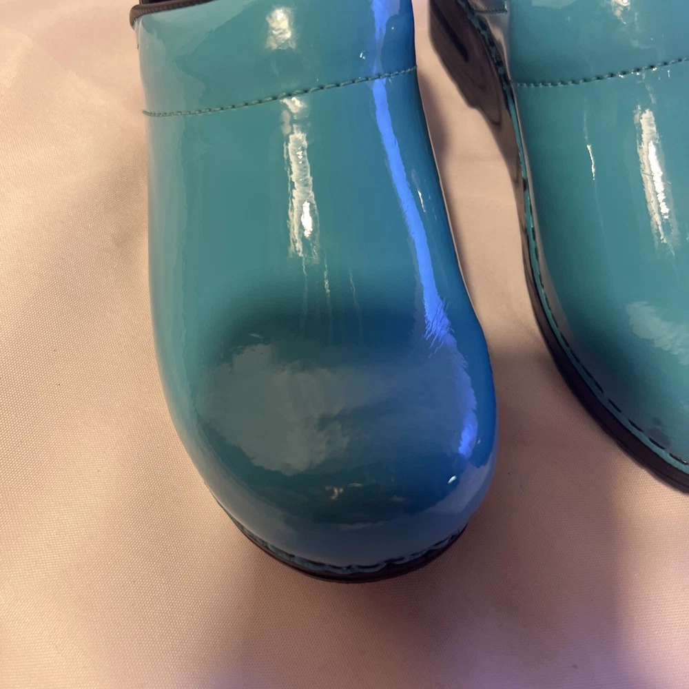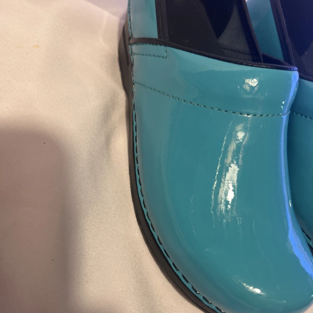 Slip into comfort with these Sanita clogs, designed with both style and ease in mind. The turquoise slip-on clogs feature a classic geometric pattern that adds a pop of color to your workwear ensemble, while the durable rubber outsole provides stable traction for all-day wear. With a size 6.5 US (37 EU), these clogs are tailored for a snug and comfortable fit, perfect for nurses and those on their feet constantly. Crafted with a smooth leather upper and a cushioning leather insole, these low-top clogs boast a mid-height block heel that ensures stability without compromising on style. The round toe design allows for ample wiggle room, and the slip-on closure ensures quick and easy wear. Ideal for both fall and spring, these Sanita clogs are a practical choice for those seeking a blend of comfort and chic.