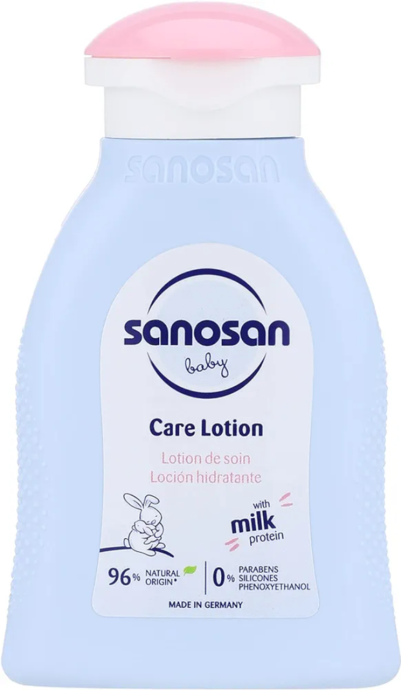 3x Sanosan Baby Lotion For delicate Skin - 100ml Each Description Gentle care for baby‘s skin The rich recipe with organic olive oil and milk protein guards baby’s skin against dryness and supports its natural protective function, preserving its natural moisture content. Active substances that are carefully chosen and perfectly harmonised to the needs of tender infant skin for care after cleansing. Suitable for daily use. The effective formula does not contain paraffin oil, colourants, silicones or parabens. The skin compatibility has been clinically confirmed. Recommended by midwives. Use: Warm a small amount in your hands. Use circular motions without any pressure to apply to your baby’s skin. Terms of Sale Color May Vary Slightly Due to the Color Calibration of Each Individual Monitor and Light Brightness Concentration During Taking Picture . Please Note the Picture Not Refer the Actual Sizes of the Goods and You Should Referee to Description and Item Details. We are not responsible for any customs charges or any other international fees that are not associated with PayPal. Customs and duties charges and any Additional charges for customs clearance will solely be the responsibility of the buyer. When Customs Clearance Procedures are Required, It Can Cause Delays Beyond our Original Delivery Estimates and We are Not Responsible for any Delays Resulting from That. Shipping Information We Ship Worldwide Direct from Egypt Within 2 - 4 Working Days Via DHL with Tracking Number for Every Shipment. Estimated Delivery Time 5 - 7 Working Days After Item Dispatched to Courier. Please don't forget to LEAVE me FEEDBACK after you get your item in a Satisfactory Condition. If you have any problem with the item, please let me know as soon as possible. Thank You for Visiting Us