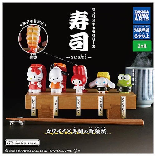 Thank you for viewing our listing at Simplytoyz. Sanrio Characters Sushi Mascot Figure Takara Tomy 1.5-Inch Mini-Figure We specialize in blind box items from Japan. That means in order for us to offer you the character from the series, we must open the packaging to be sure the correct character is inside. Some items may come with their original packaging and some may not. If that is important to you, please let us know and we can check to be sure. We ship Monday - Friday except on postal holidays. Be sure to check back often as we are always adding new toys for you to discover!