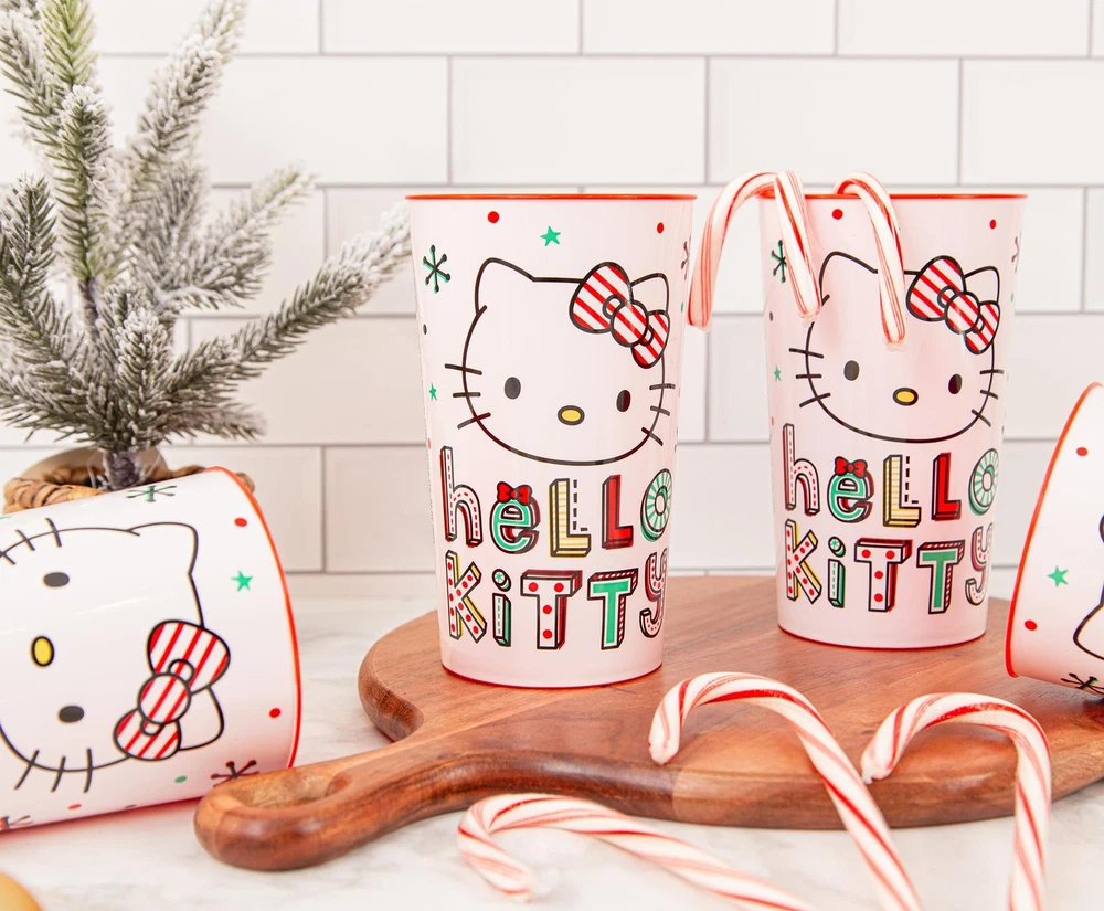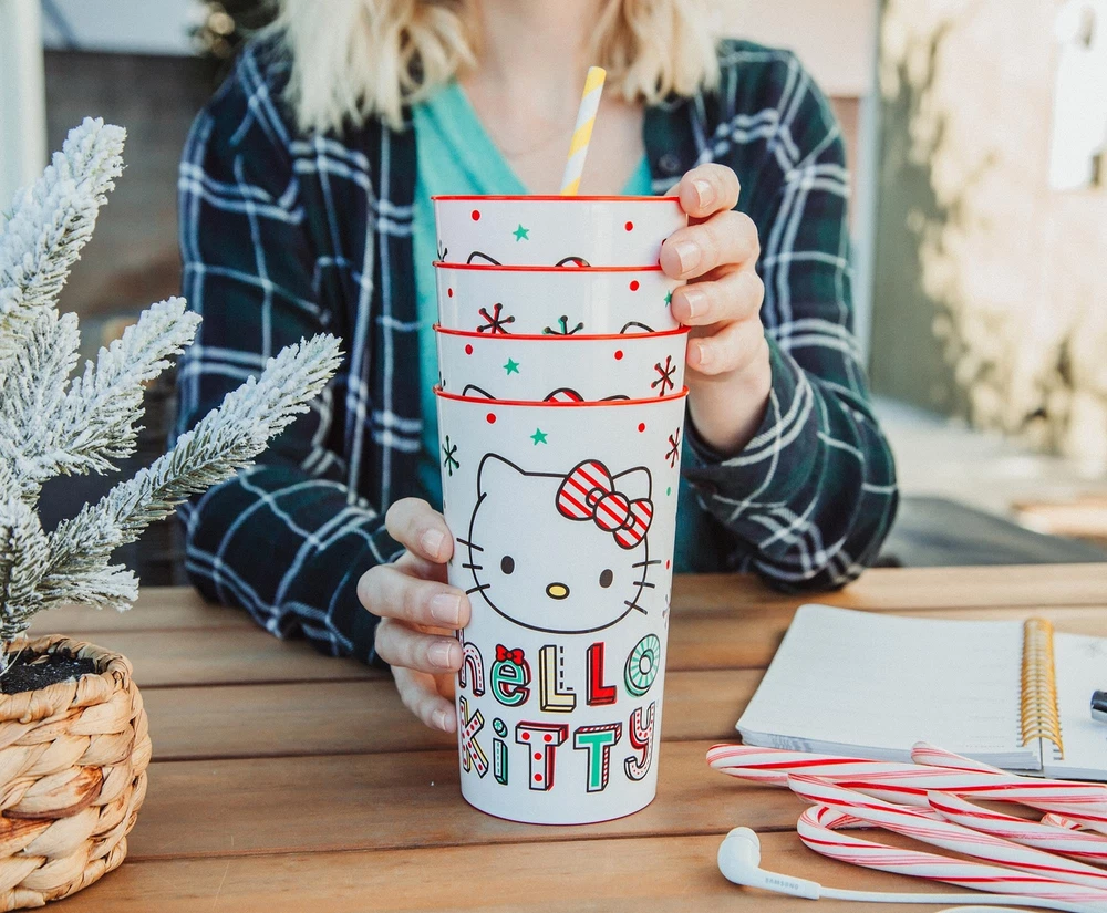 Sanrio Hello Kitty Holiday 4-Piece Plastic Cup Set | Each Holds 22 Ounces