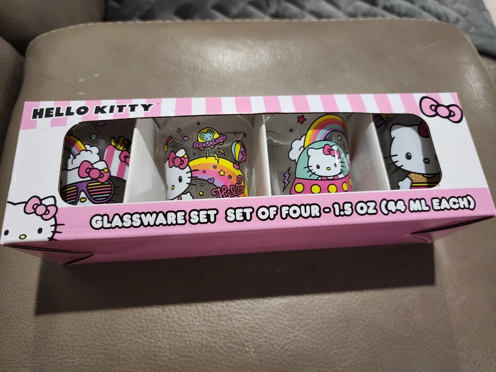 Sanrio Hello Kitty Shot Glass Set! Glassware 1.5 oz Set Of 4 Glasses! BRAND NEW!