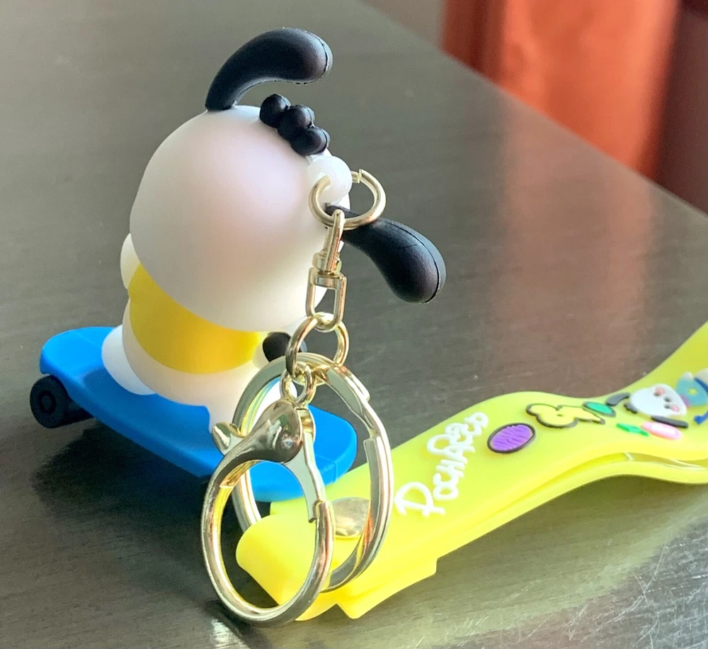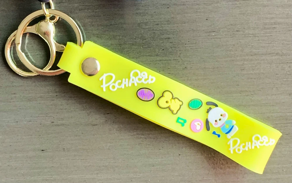 Features: Multifunctional Character: Pochacco Brand: Sanrio Color: Multicolor Department: Women Theme: Cartoons & Characters Handmade: No Vintage: No Character Family: Hello Kitty Type: Key Chain Accents: Strap, charms, Figurine Personalize: No Material: PVC