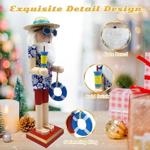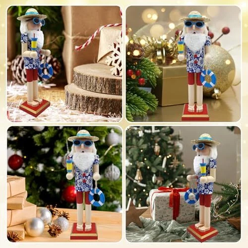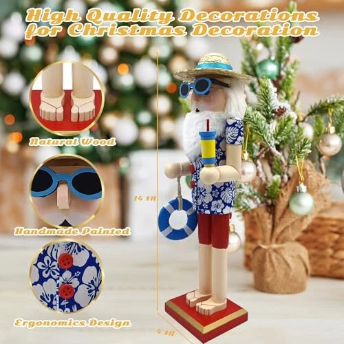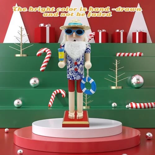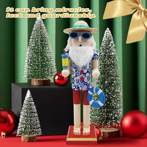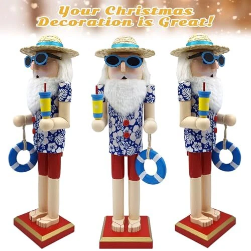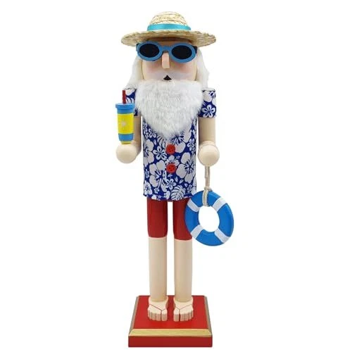 Santa Beach Nutcracker Christmas Decorations - 15 Inch Wooden Hawaii Nutcracker