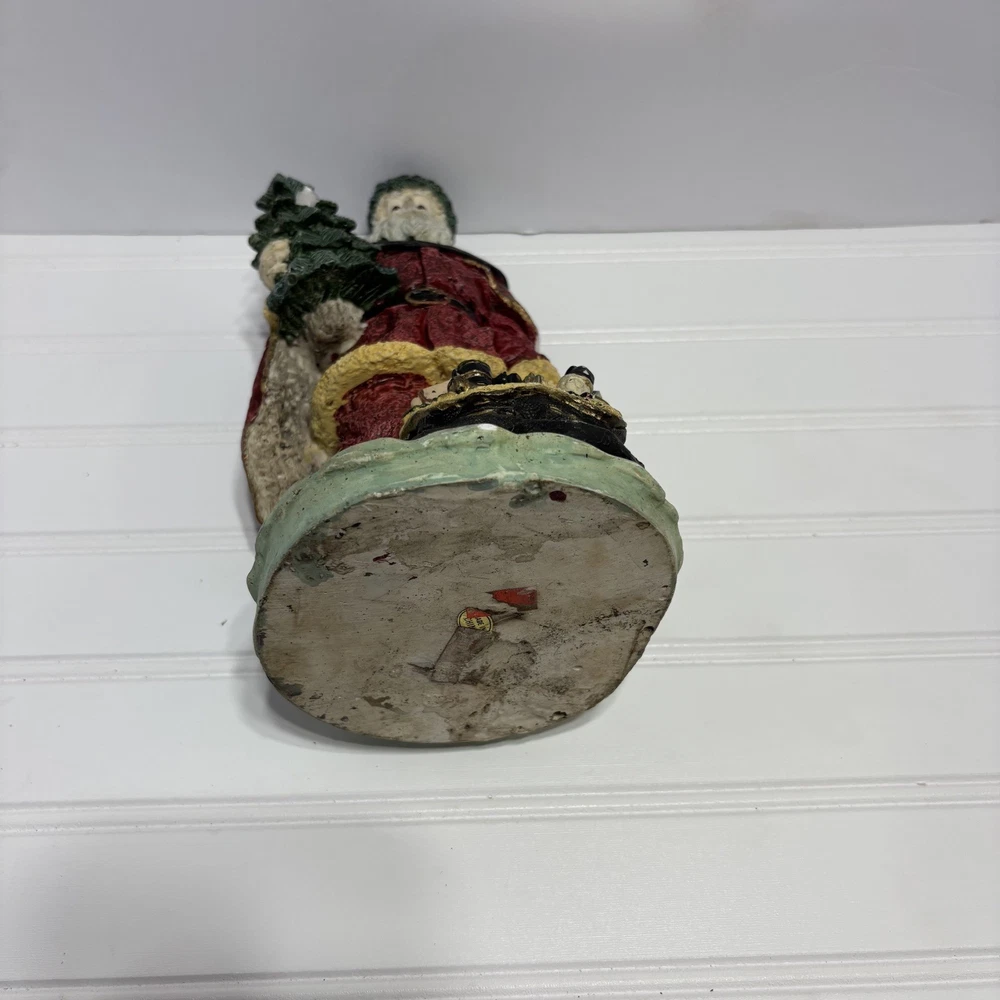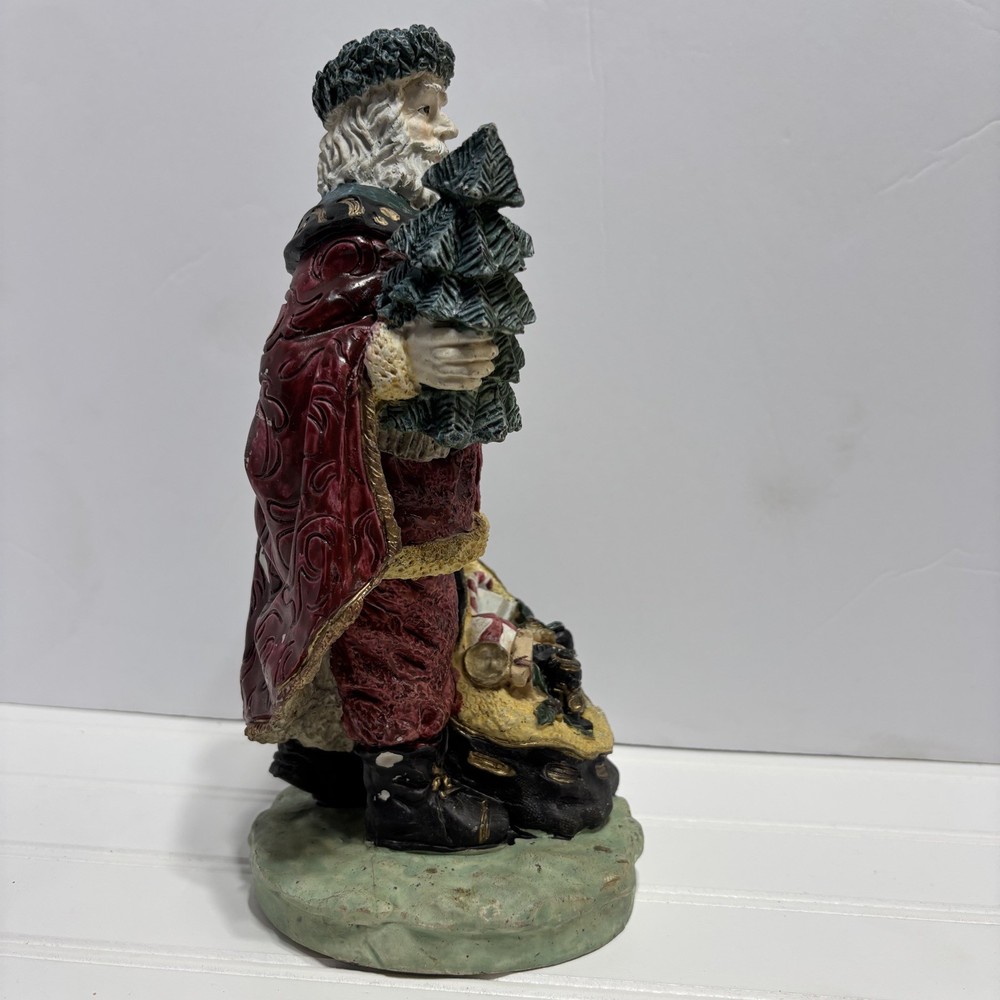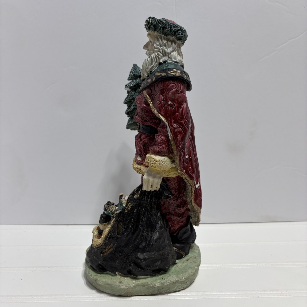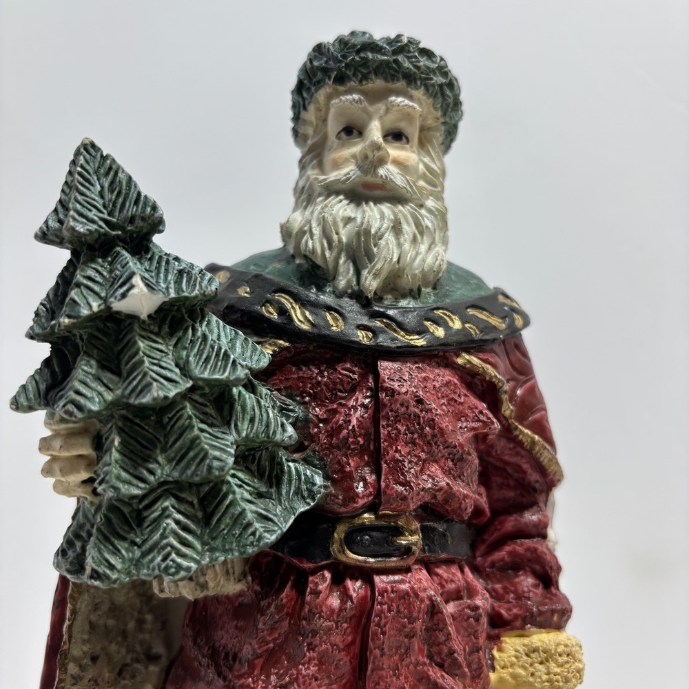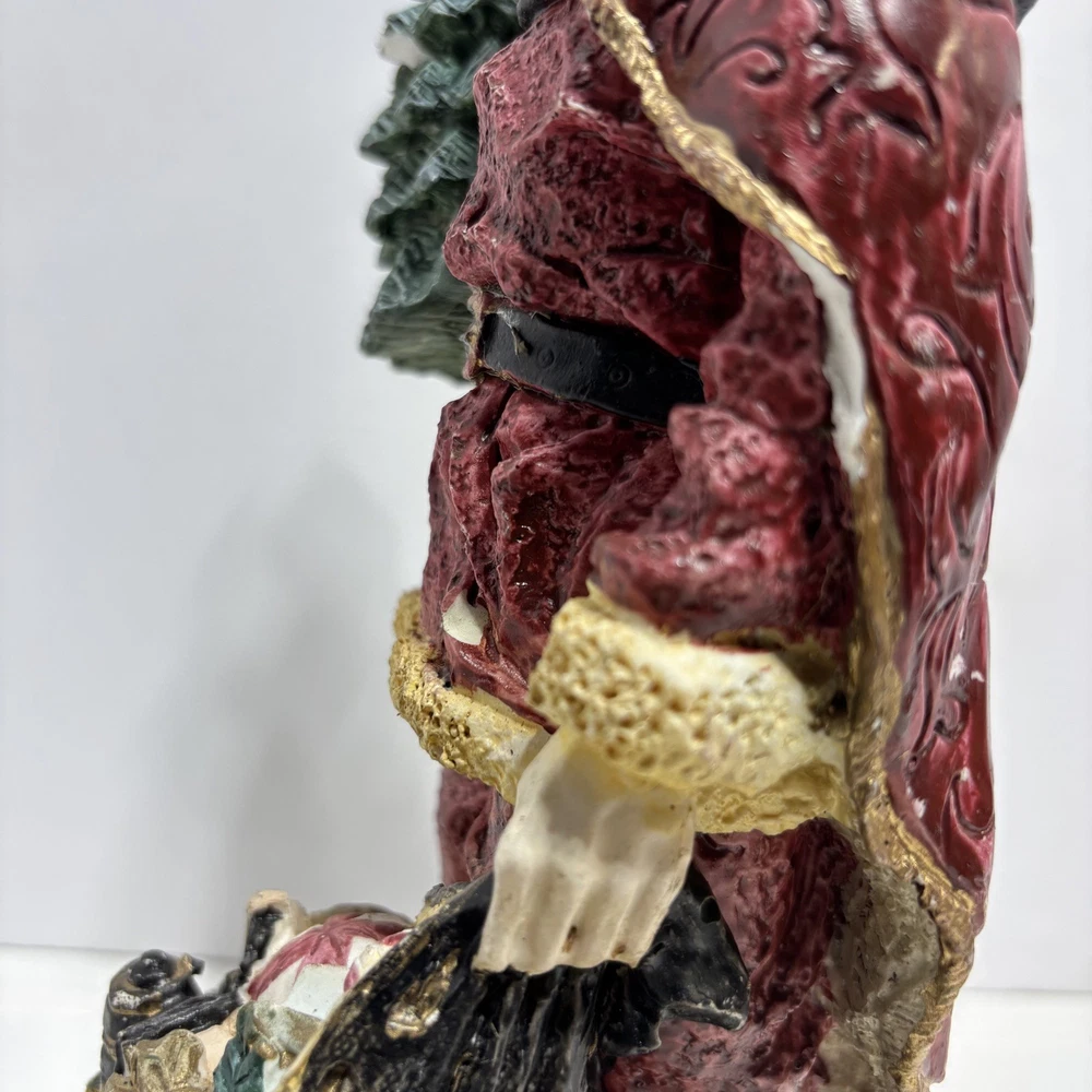 The Santa Claus Figurine featuring St. Nicholas holding a Christmas tree toy sack is a vintage piece standing at 10 inches tall. Made of ceramic and porcelain, this multicolored figurine captures the essence of the holiday season with its festive design and classic Santa Claus character. Perfect for collectors or holiday enthusiasts, this figurine is a charming addition to any Christmas decor, depicting the timeless tradition of St. Nicholas bringing gifts on Christmas Eve.