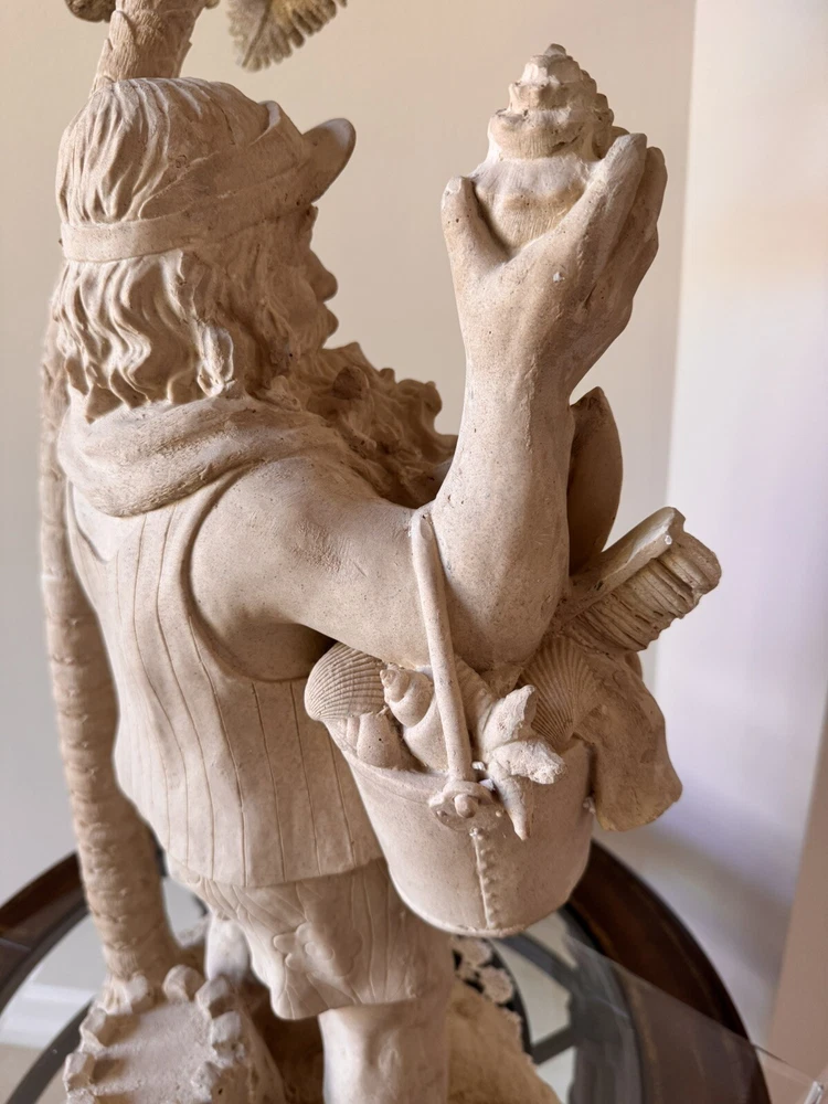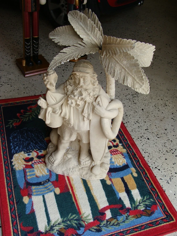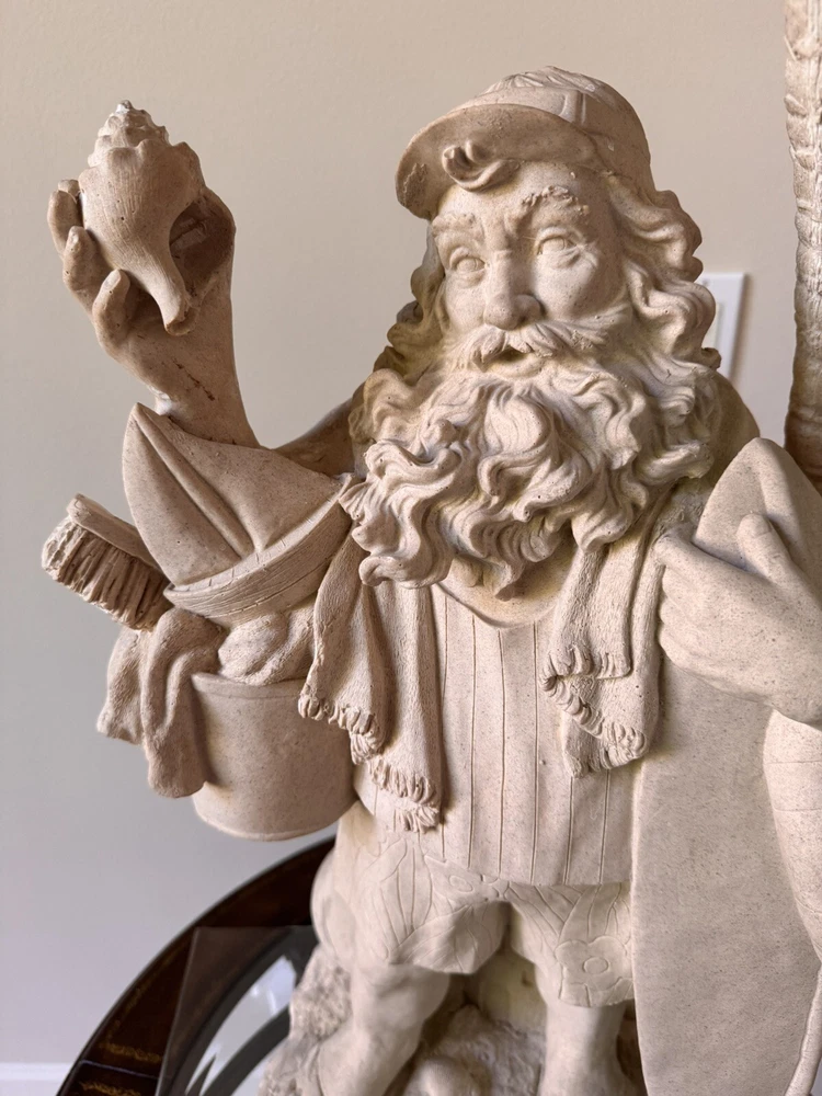 Material: Resin Style: Nautical, Coastal Type: Figurine Character Family: Santa Holiday Christmas Collection: Holiday Number in Pack: 1 Subject: Santa Shape: Santa Size: Medium Occasion: Christmas Item Length: 18 in Pattern: Nautical Features: Carvings Signed: No Color: Beige Country/Region of Manufacture: Unknown Brand: Coastal Theme: Santa, Nautical, Coastal, Beach Sand, Seashells Handmade: Yes Item Height: 32 in Item Width: 18 in Character: Santa