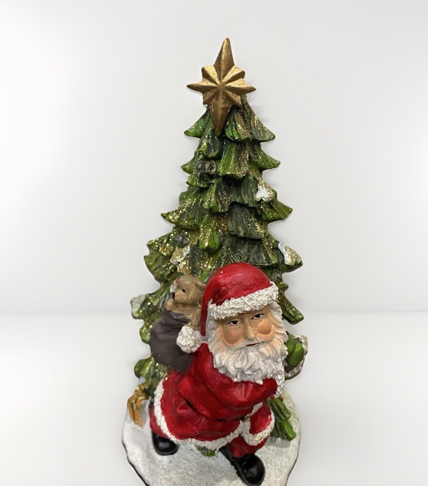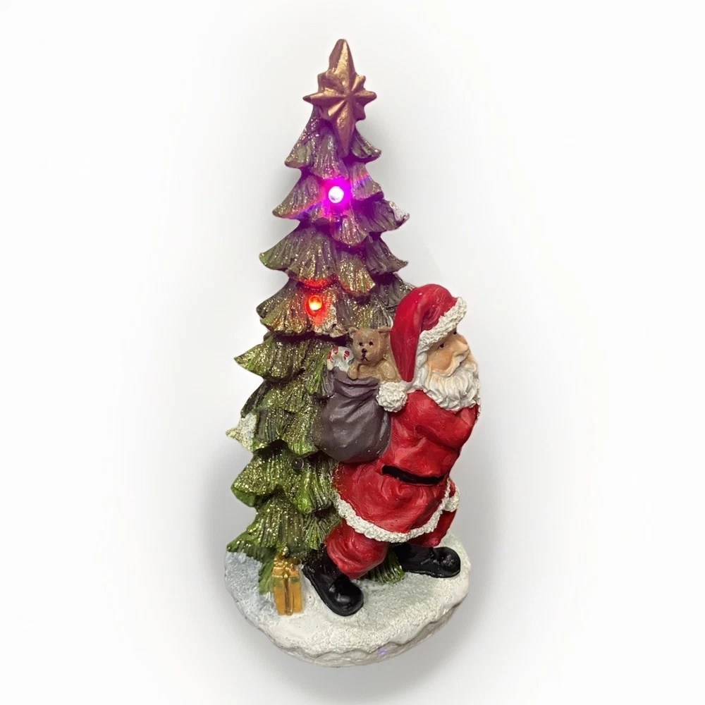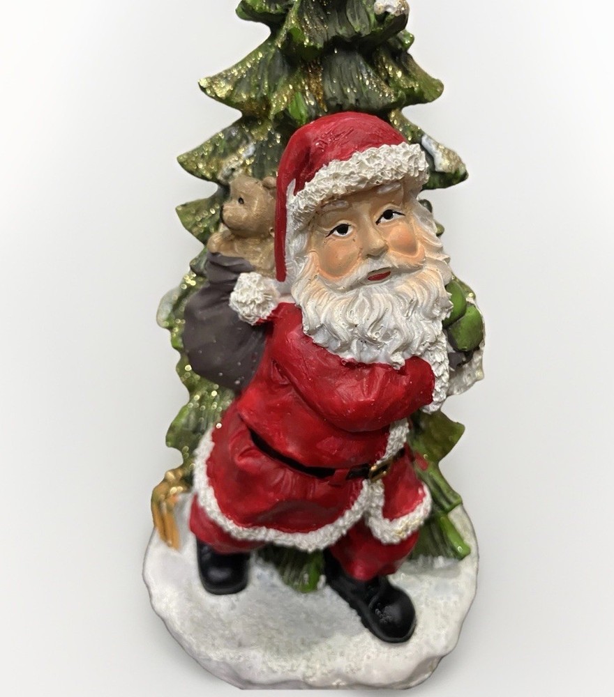 This Santa Claus figurine is a charming addition to any Christmas decor. Standing at 9.5 inches tall and made of resin, it features a traditional design with a multicolor pattern. The figurine lights up and depicts Santa delivering presents under the Christmas tree, adding a festive touch to your holiday display. Perfect for adults and collectors, this original seasonal piece from China is sure to bring joy to your home during the Christmas season.