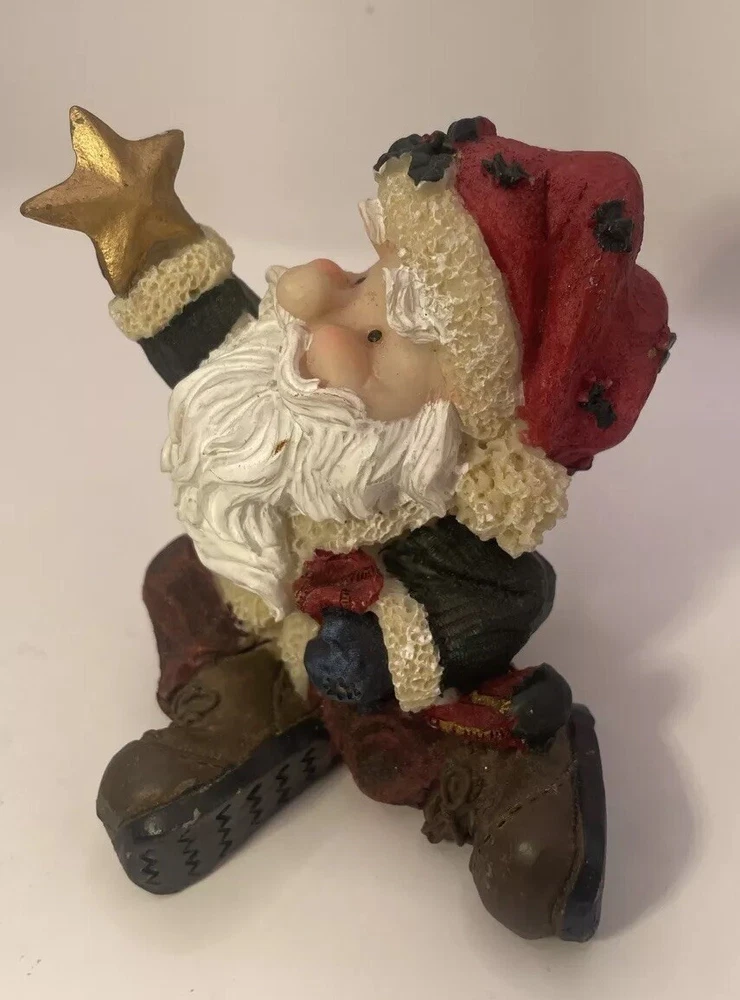 This beautiful figurine depicts Santa holding a star, adding a touch of elegance to your holiday decor. The intricate details on the star and Santa's robe make it a perfect addition to any collector's display. Crafted with high-quality materials, this figurine is a must-have for anyone who loves unique and charming holiday decorations. Whether you're a fan of Santa or stars, this piece is sure to delight. Add it to your collection today! Approx. 3.5” H. No box.