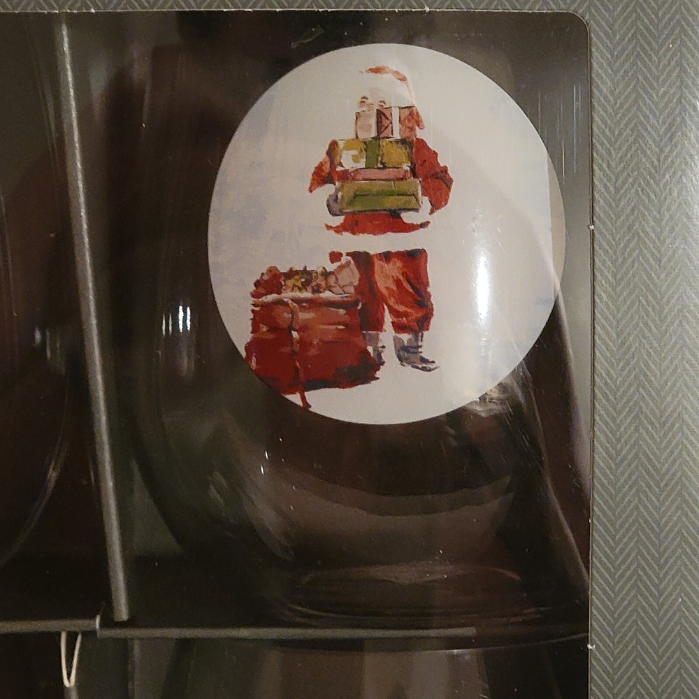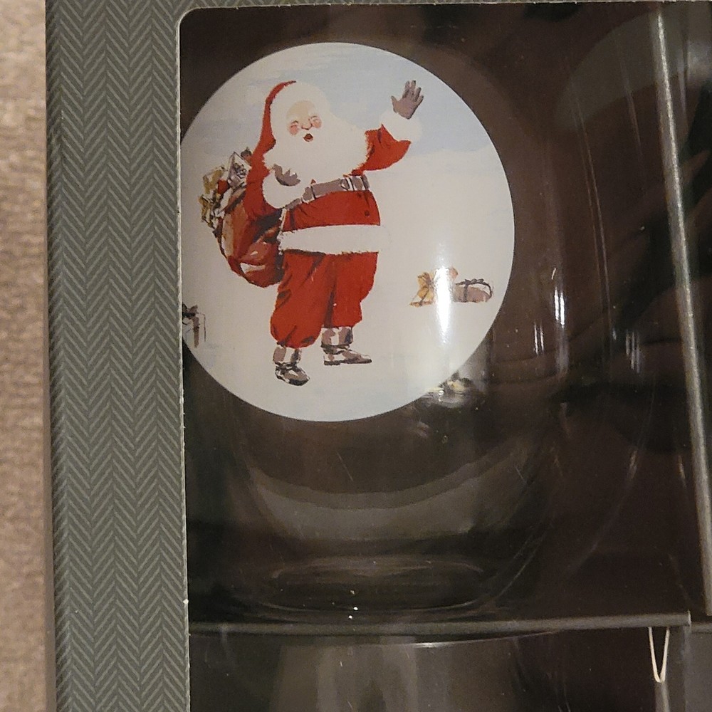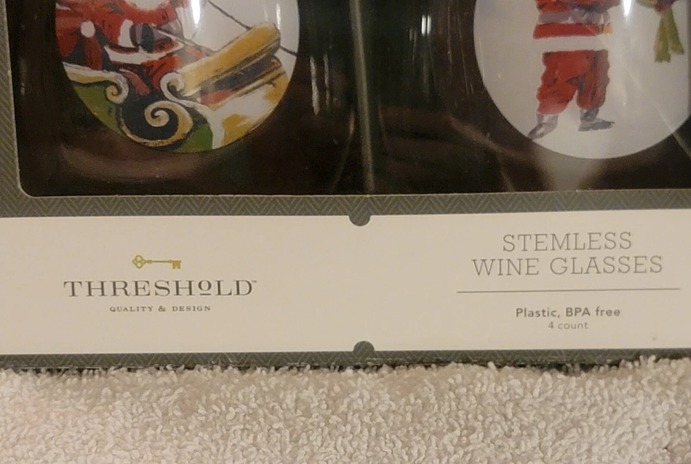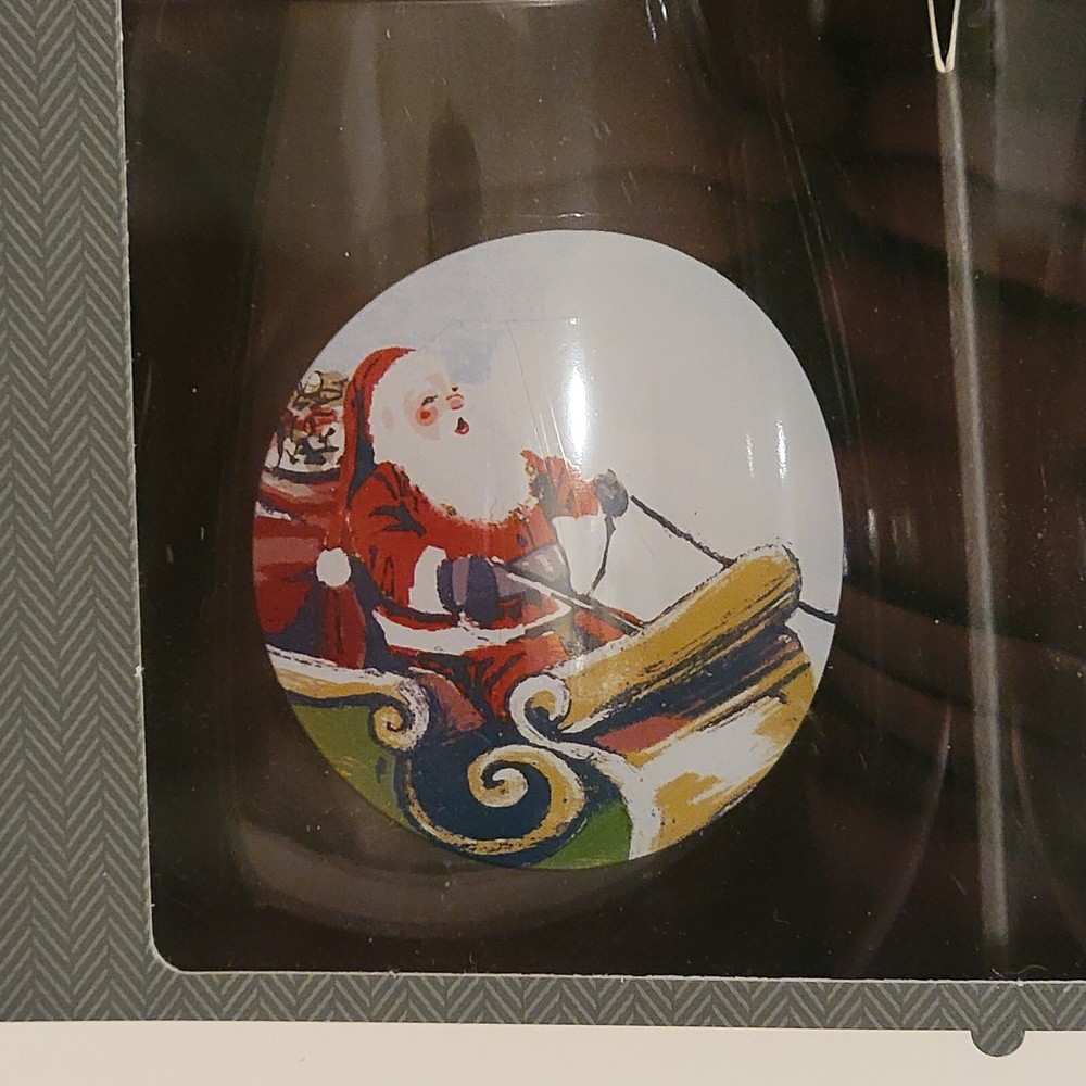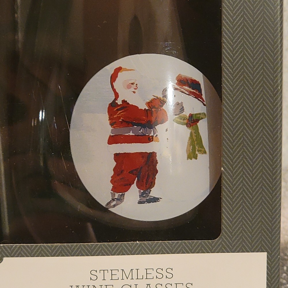 Threshold Four Stemless Wine Glasses Christmas Santa All four glasses depict Santa in different scenes Items in pics is what you'll be receiving