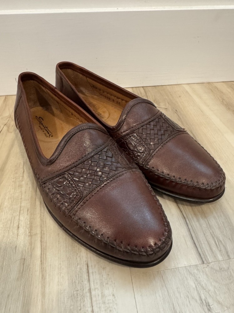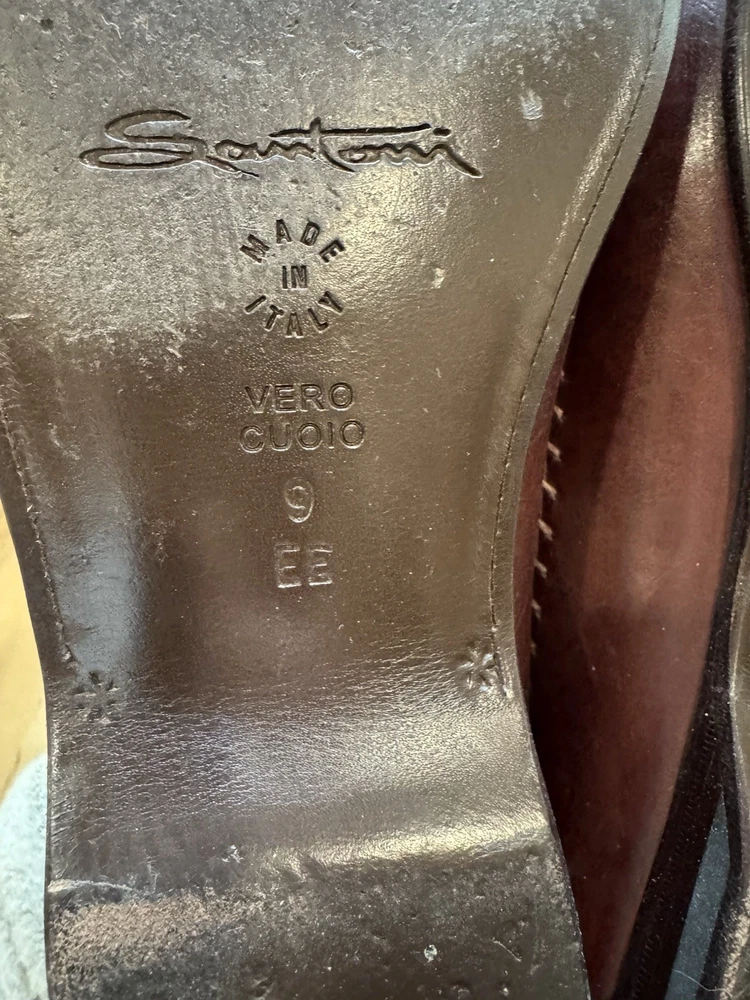 Santoni Men’s Leather Brown Loafers Tassels Made In Italy Size 9