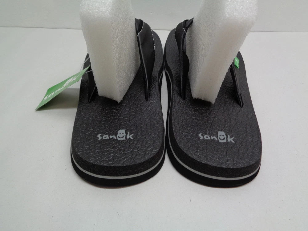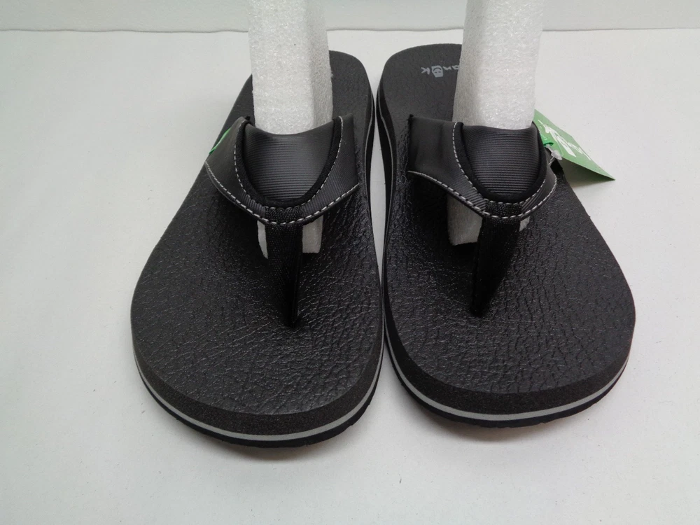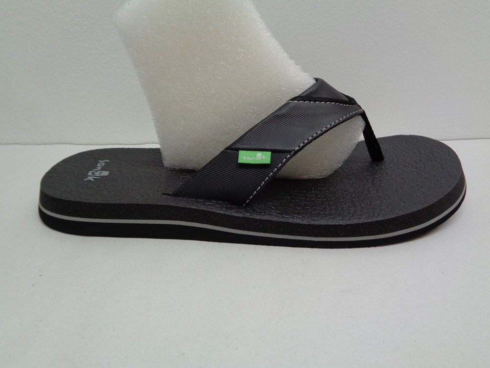 Sanuk Size 9 BEER COZY Yoga Mat Flip Flops Thongs Sandals New Mens Shoes -Style: BEER COZY FLIP FLOP, SMS2839C -Color: Black -Man made upper -Textile lining -Rubber outsole - Thong flip-flop featuring nylon webbing toe post and no-slip footbed crafted from real yoga mat - Arch cookie for added comfort - Happy U sponge rubber outsole -UK 8, Eur 42, and Japan 27