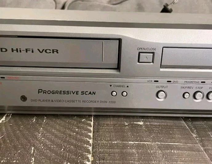Experience the best of both worlds with this Sanyo DVW-7200 DVD Player VCR Combo. This unit plays various formats such as DVD and VHS tapes. It features a 4-head VCR and includes a silver-colored unit that is perfect for any home entertainment setup. Connect it to your TV using an AV cable and enjoy high-quality video and audio. This unit also has features such as composite video RCA, stereo audio L/R RCA, digital audio coaxial RCA, and S-Video. It is ideal for anyone who wants to enjoy their favorite movies and shows without the need for separate devices. No remote but shouldn't have problem using a universal remote with it