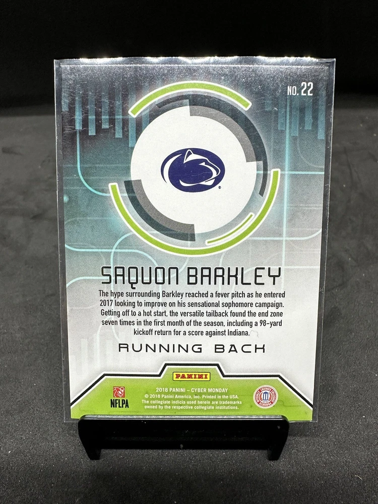 Up for sale is a 2018 Panini Cyber Monday Rookie Card of Saquon Barkley #22 126/199. Thanks for looking.