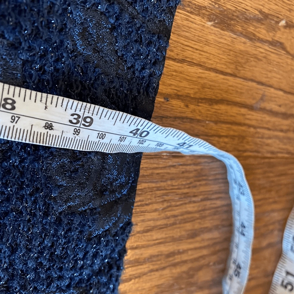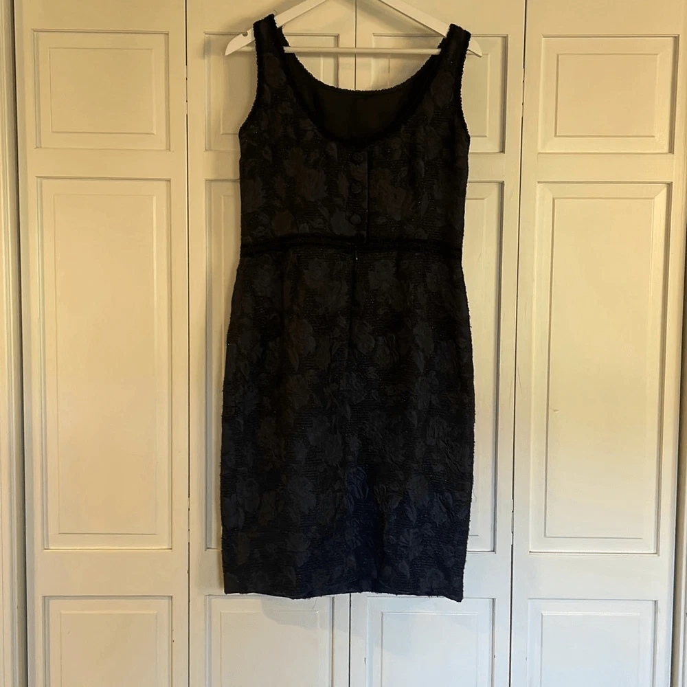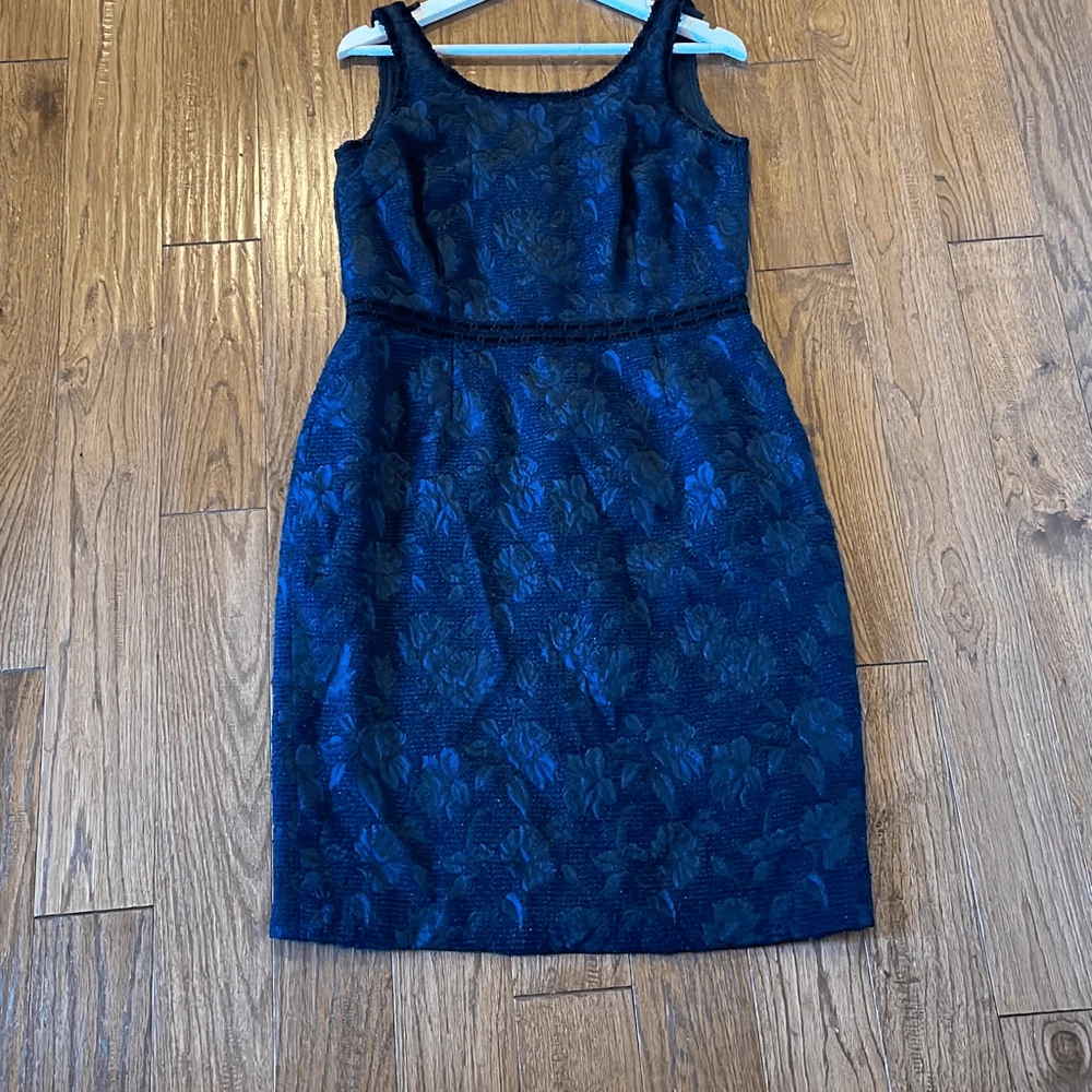 Brand: Sara Campbell Description: wool blend brocade sleeveless dress with silk lining- allover rose print with ribbon trim Size: missing size tag but measures like an 8 Color: navy and black Condition: Gently Worn Very Good ๐๐ป Measurements: Pit to pit: 18โ Length: 40โ **Bundle and Save!!** all measurements are approximate and taken laying down A12