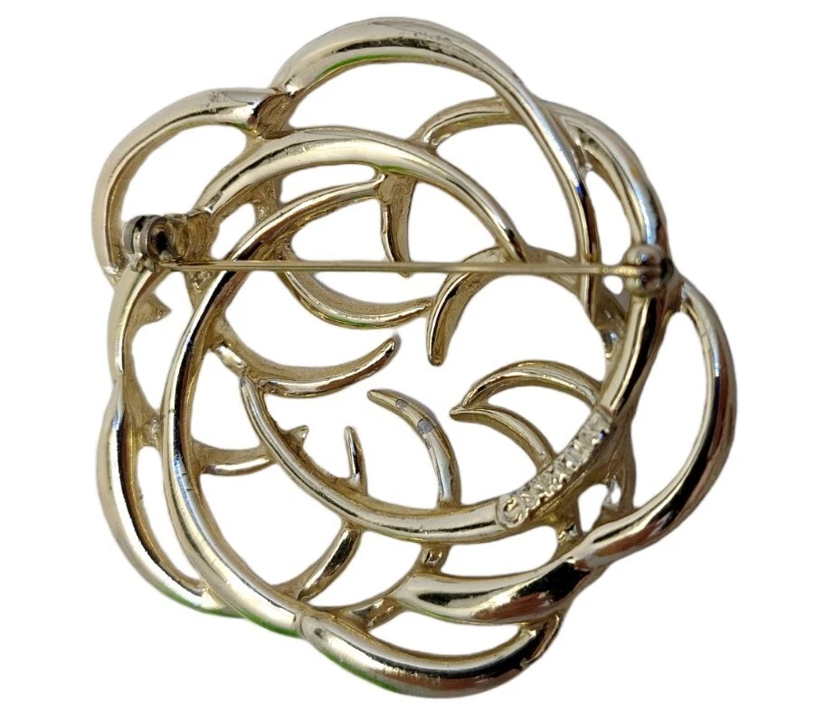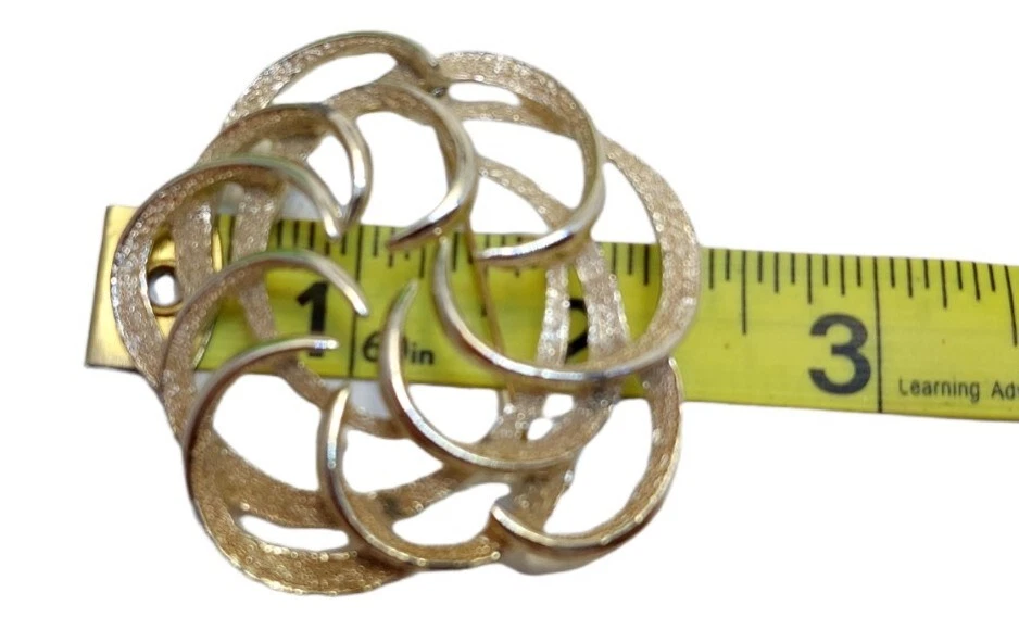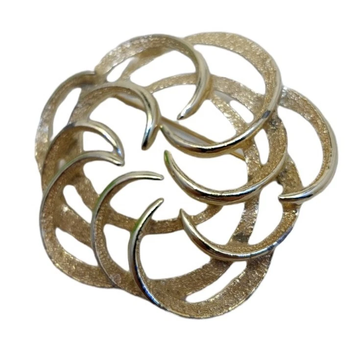 Sarah Coventry Textured Gold Tone Large Swirled Brooch Lapel Pin 2"