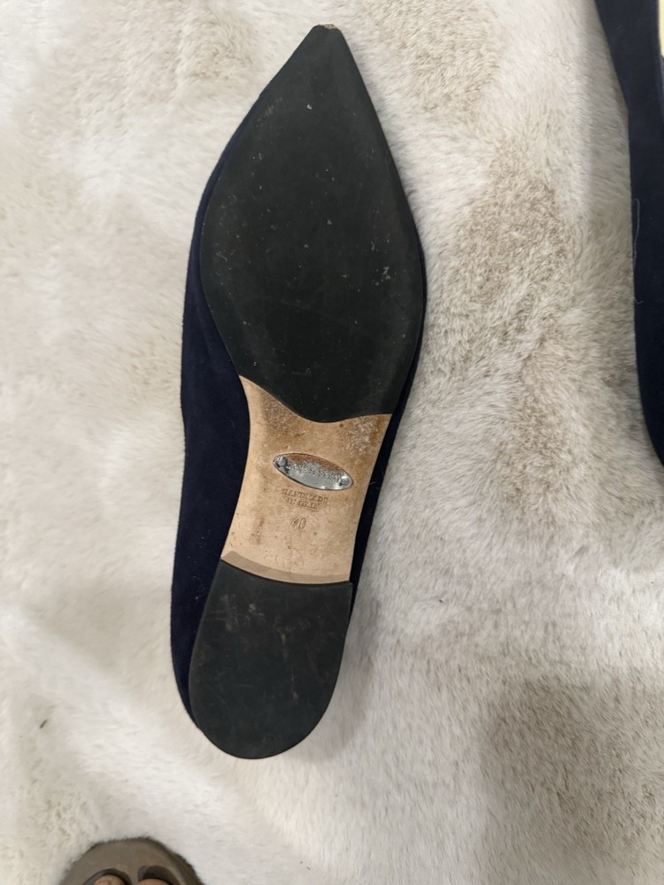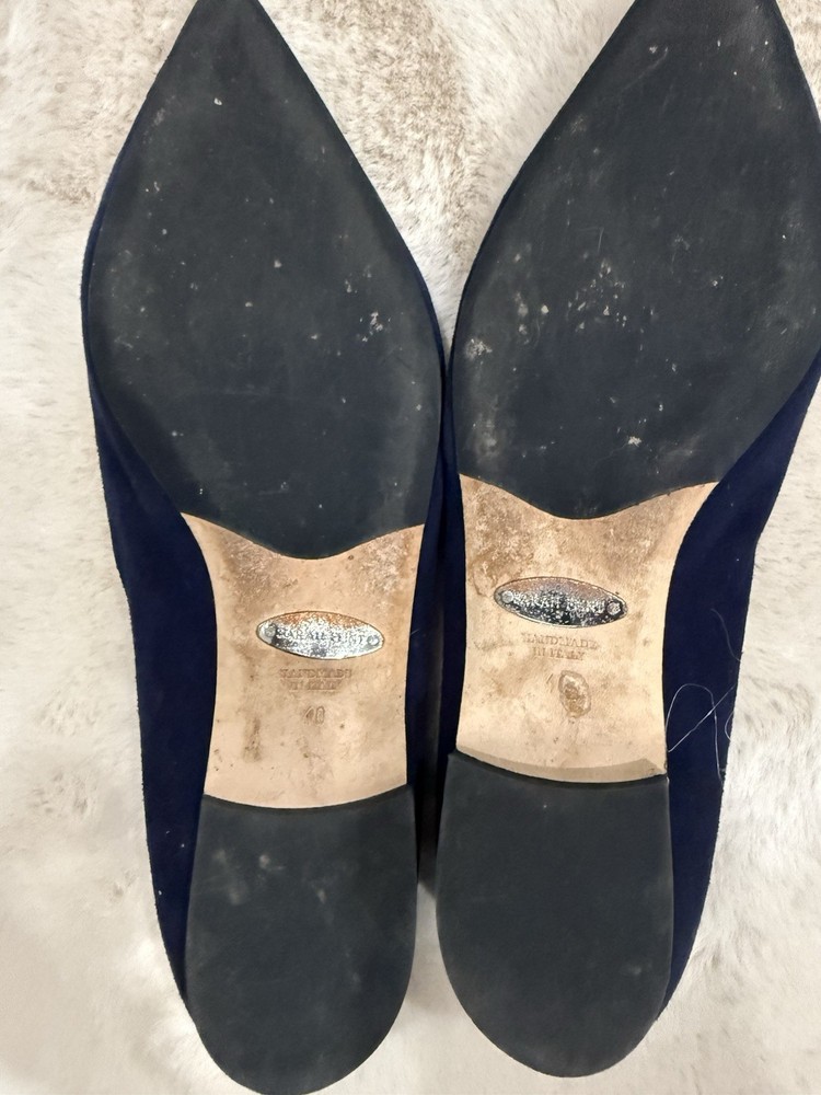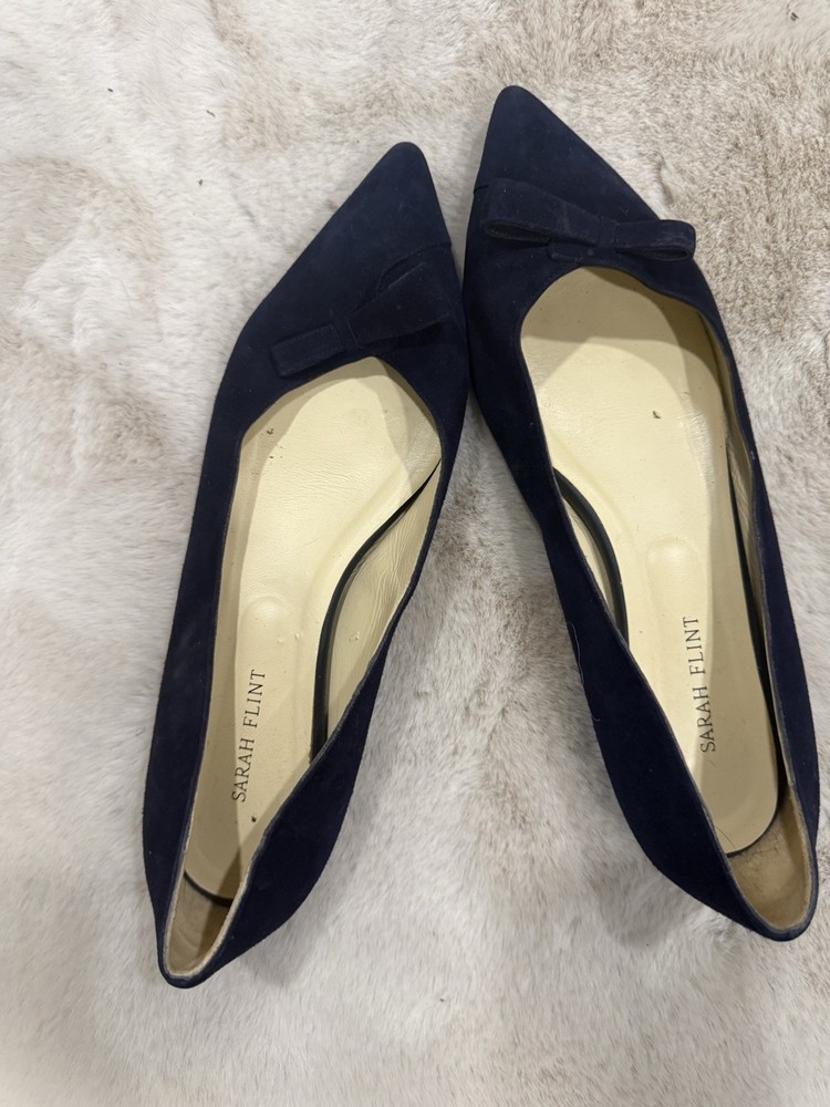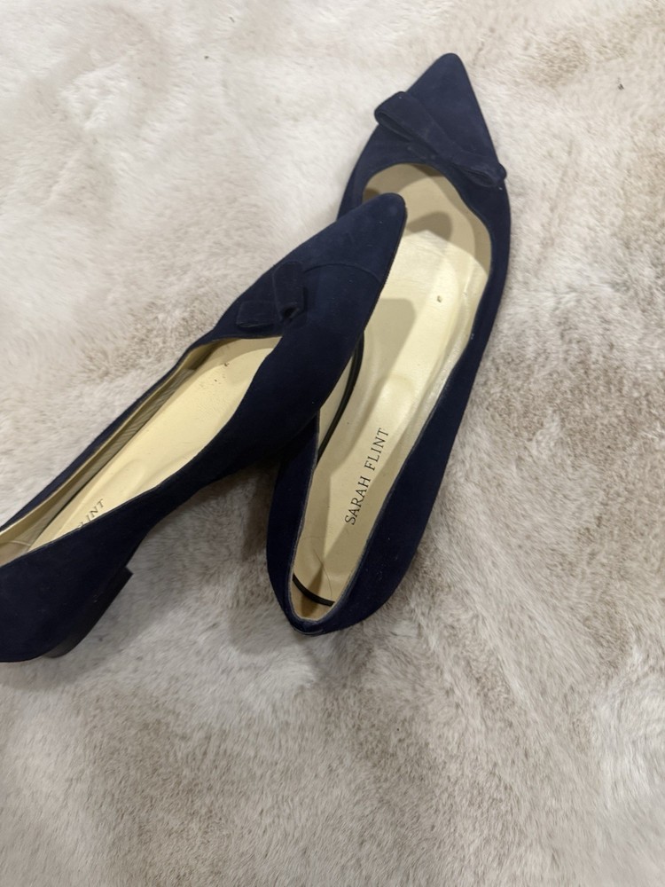 Sarah Flint Navy Suede Pointed Toe Flats with Bow for Women