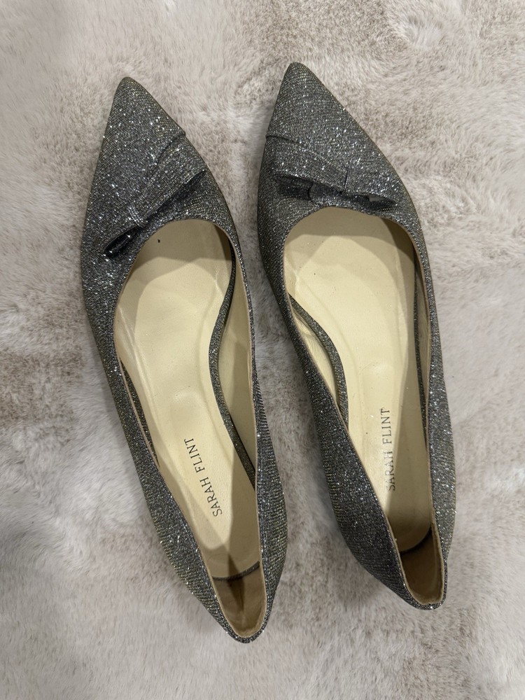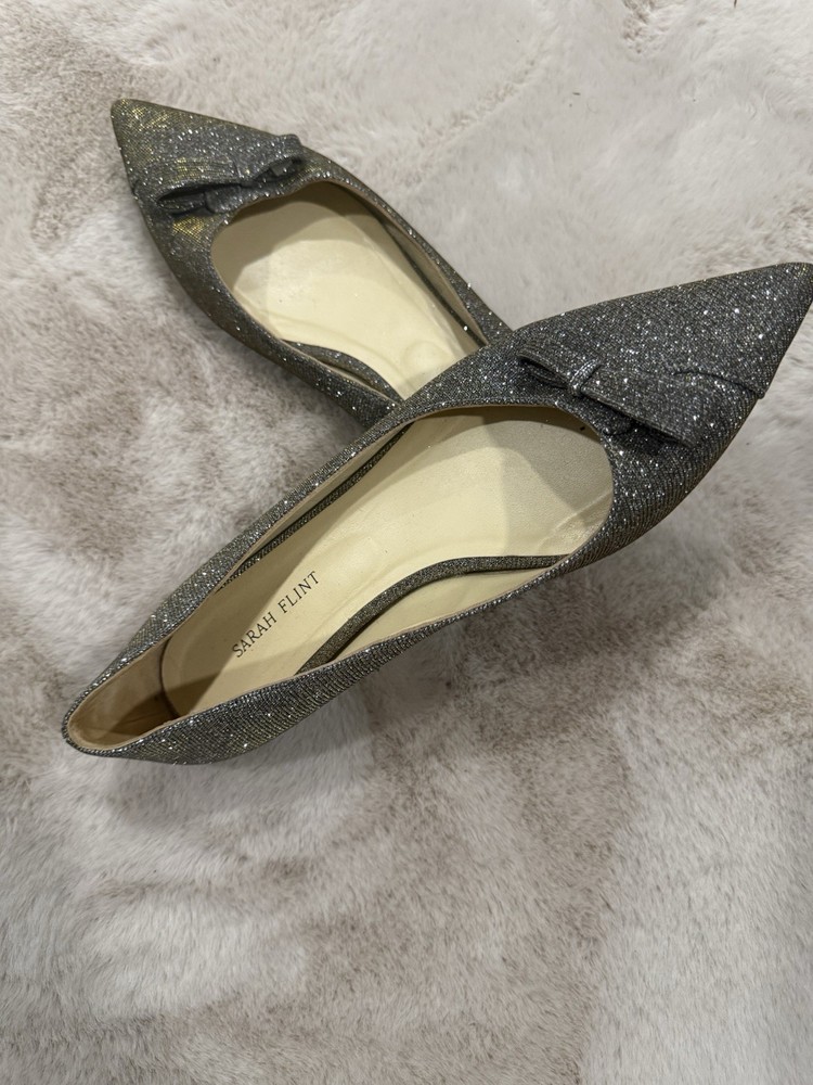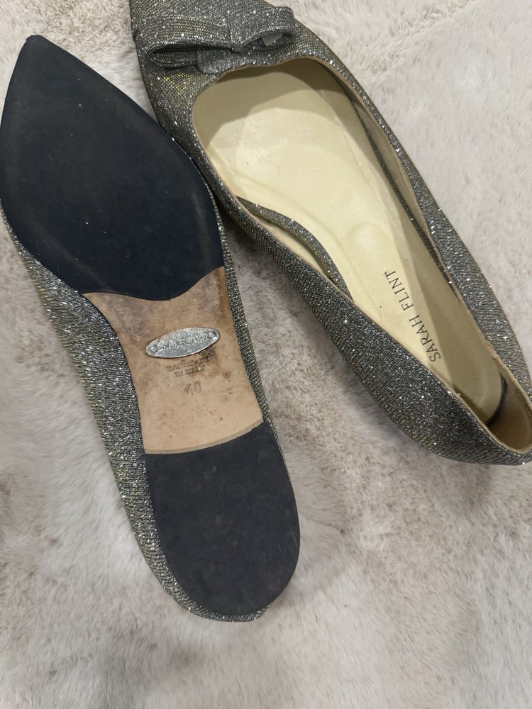 Sarah Flint Silver Glitter Bow Pointed Toe Ballet Flats Women’s Size 40