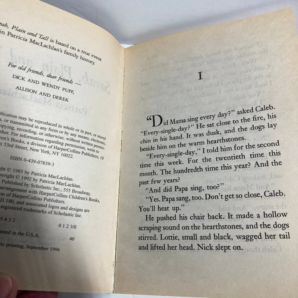 Original Language: English Language: English Signed: No Features: Illustrated gtin13: Does not apply Intended Audience: Ages 9-12, Young Adults, Adults Book Title: Sarah, Plain and Tall Format: Paperback Genre: Children & Young Adults, Historical, Bedtime Stories & Nursery Rhymes Topic: Children ISBN: Does not apply Narrative Type: Fiction Type: Novel Publisher: Scholastic Inc. Author: Patricia MacLachlan Edition: Special Edition