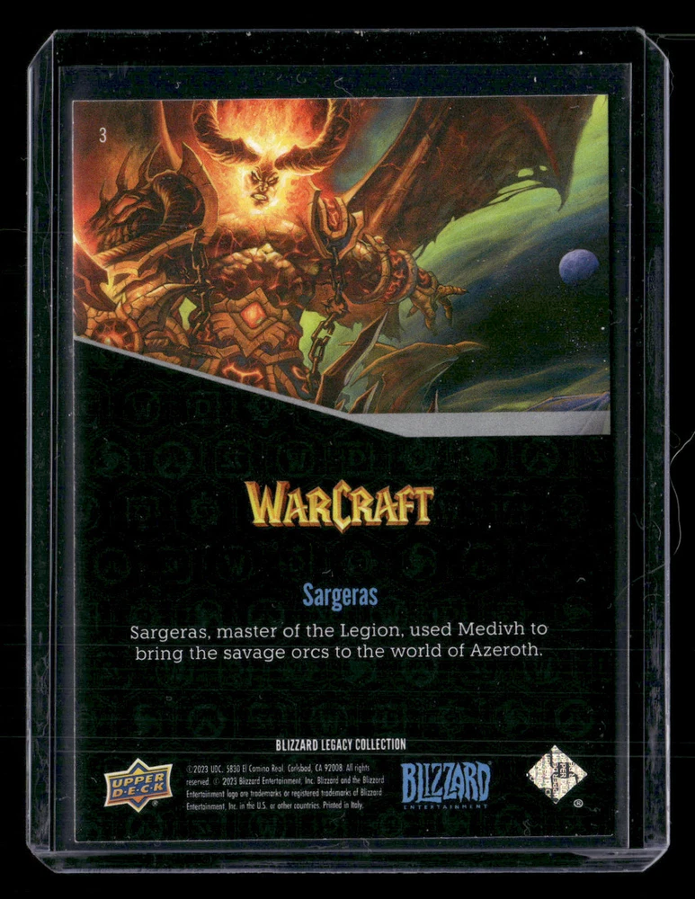 Type: Non-Sport Trading Card Year Manufactured: 2023 Card Number: 3 Franchise: NON_SPORT Autographed: No Set: 2023 Upper Deck Blizzard Legacy Collection Player/Athlete: Sargeras Season: 2023 Graded: No