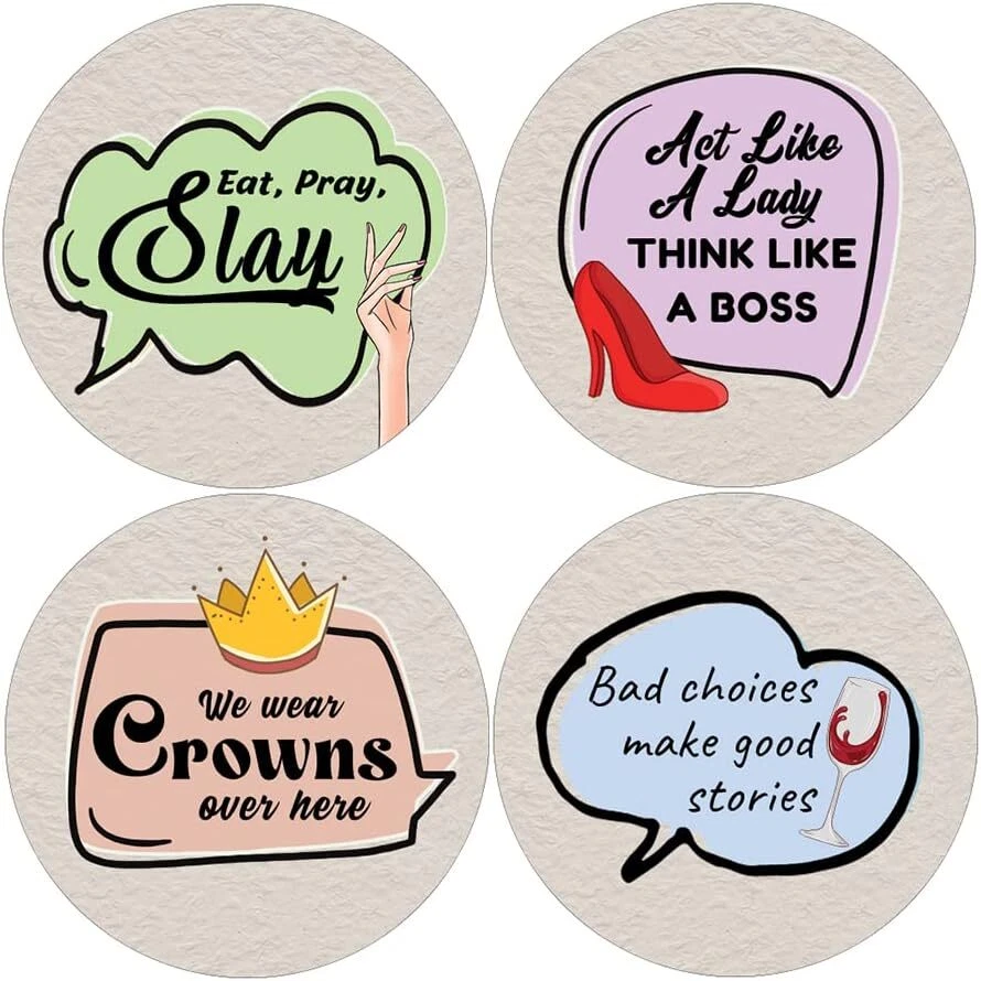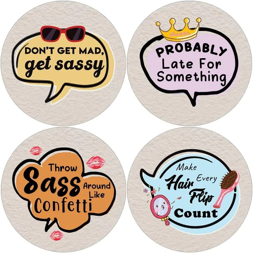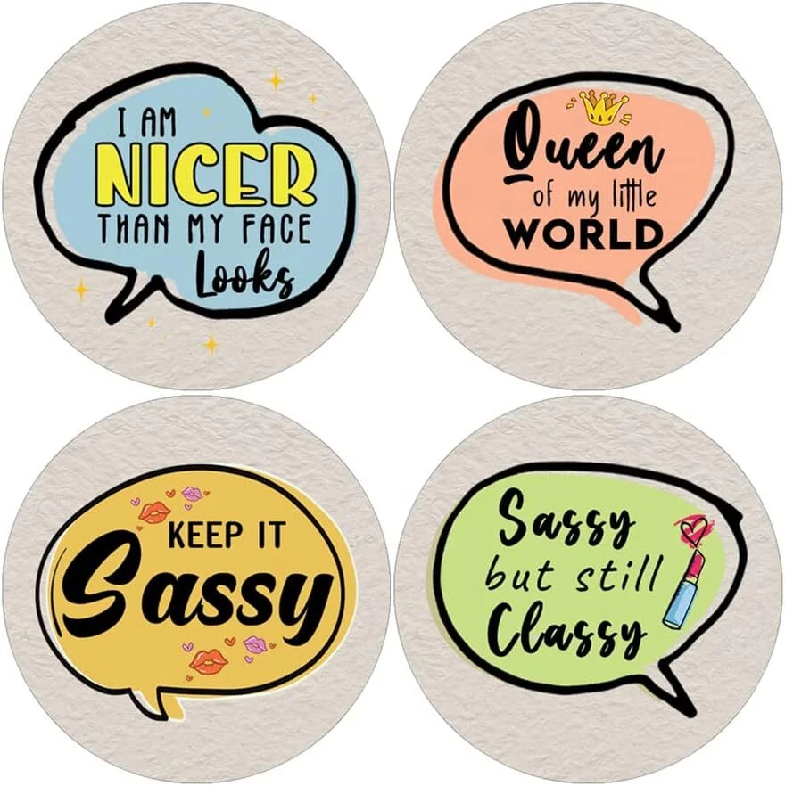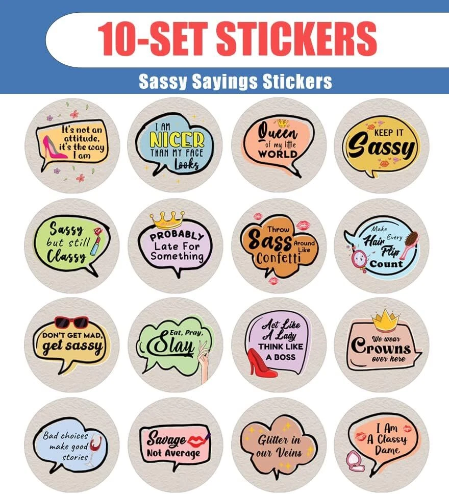 16 UNIQUE DESIGNS INSPIRING STICKERS FOR YOUR DIY PERSONALIZED DECORATIONS - These colorful and uniquely inspiring round shaped stickers are the best tool for DIY decoration and personalization of your belongings. GREAT STOCKING STUFFERS, SCHOOL CORPORATE TEACHING SUPPLEMENTARY MATERIALS, AND INCENTIVE GIFTS - Great rewards giveaways for Boys Girls, Kids, Teens, Children, Adults, Professionals. A perfect design to give during guidance sessions, classroom activities, school giveaways, birthdays, anniversaries, family day, and any other special occasions. MADE WITH DURABLE AND WATERPROOF MATERIALS - There is a lamination or coating to make the stickers high water resistant, and WILL NOT fade from the water. The stickers can stick it anywhere you like, and it sticks there and lasts a long time. A COLORFUL AND DECOR STICKER DECAL - Each sheet with 16 individual round stickers. There are 10 Sheets, with a total of 160 pieces of stickers. STICKER SIZE: 1.5 INCHES IN DIAMETER Sassy Sayings Stickers (10 Sets X 16 Designs) COLORFUL AND COLLECTION OF TEXT STICKERS • Well designed. • Very encouraging. • Self-adhesive. Sassy Sayings Stickers (10 Sets X 16 Designs) are super fun to collect; you can't have just one! That's why you will find a selection of stickers right here. Each package comes with different stickers in a variety of designs. Stick them here, stick them there, stick them everywhere! Everyone will love these self-adhesive stickers. These colorful stickers are perfect for any adults and these come with very inspiring messages and bright pictures. A fun, inexpensive way to add a decorative, notes, and stationery. Delight yourself with uplifting messages designs that are very encouraging. Sassy Sayings Stickers (10 Sets X 16 Designs) perfect for giveaways, behavior incentives, prizes! These stickers are acid-free, nontoxic, and safe for use on photos. This product comes with a 60 days money back guarantee. You can return them to us for a full refund.