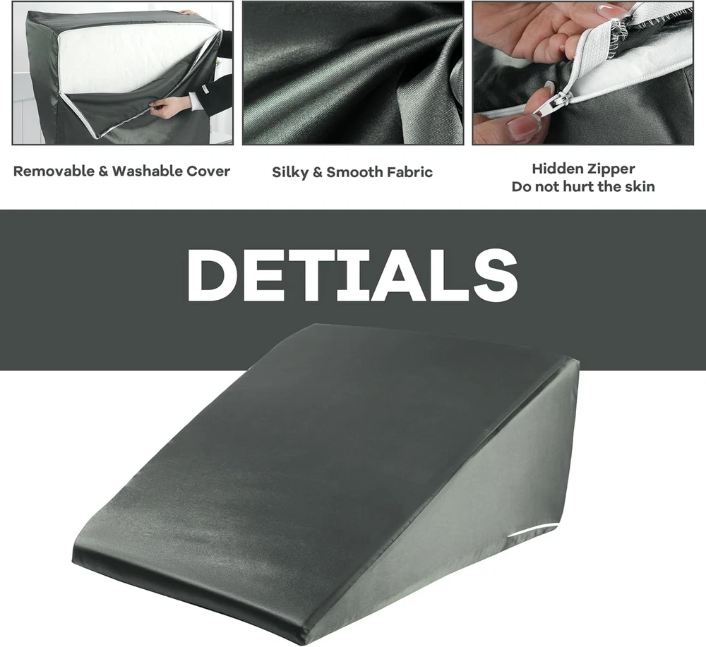 【Product Size】 : 25x25x12.5 inches pillowcase fits 24x24x12 inches wedge pillow. 25x25x10.5 inches pillowcase fits 24x24x10 inches wedge pillow. 25x25x8 inches pillowcase fits 24x24x7.5 inches wedge pillow. (Package do not include pillow, cover only). Fabric--Satin. 【Silky & Smooth】High quality satin fabric, this wedge pillow cover is extremely lustrous and smooth. Designed to be gentle and soothing to the skin, it is good for the hair and skin, leaving you with a luxurious feeling. Relax and feel unrivalled comfort. 【Breathable & Soft】Say goodbye to restless nights because of the heat, the comfortable satin fabric wedge pillowcase stays breathable and soft. Let you wake up refreshed and ready to take on the day, so you can sleep comfortable and breathable without stifling sweat on even the hottest summer days. 【Perfect Fit】Designed for wedge pillows, long zip design makes the pillowcase easy to install and protects your wedge pillow prolonging the life of your pillow. 【Machine Washable】Removable & machine washable. Our wedge pillowcases take the hassle out of hand washing, just unzip and throw them in the washing machine for a new look. Great quality, very durable and won't break down with multiple washes. Product Description The video showcases the product in use. The video guides you through product setup. The video compares multiple products. The video shows the product being unpacked.